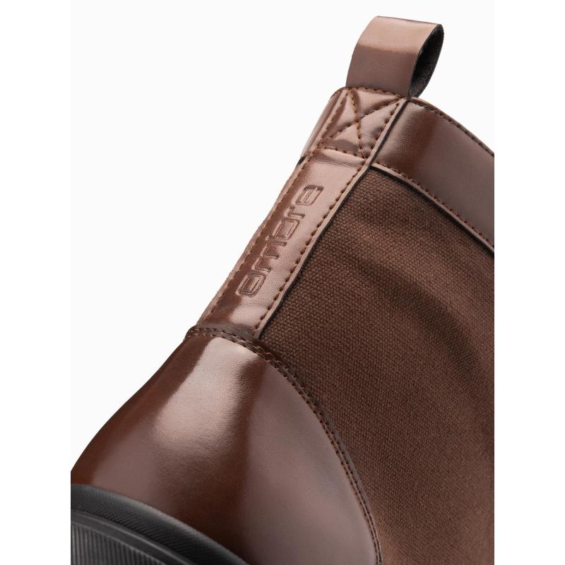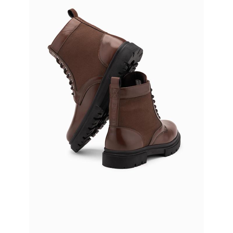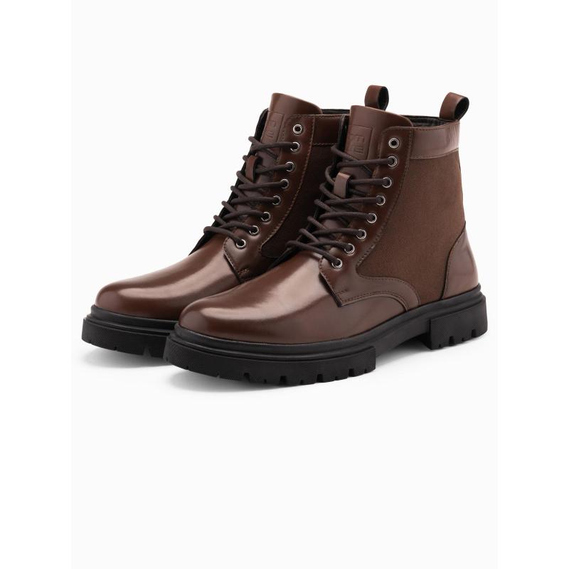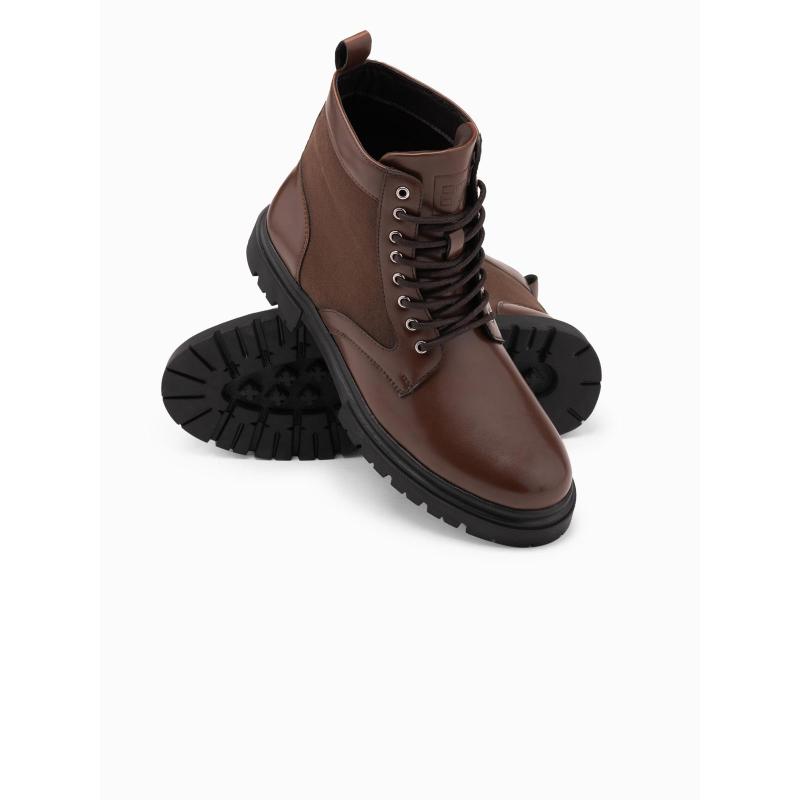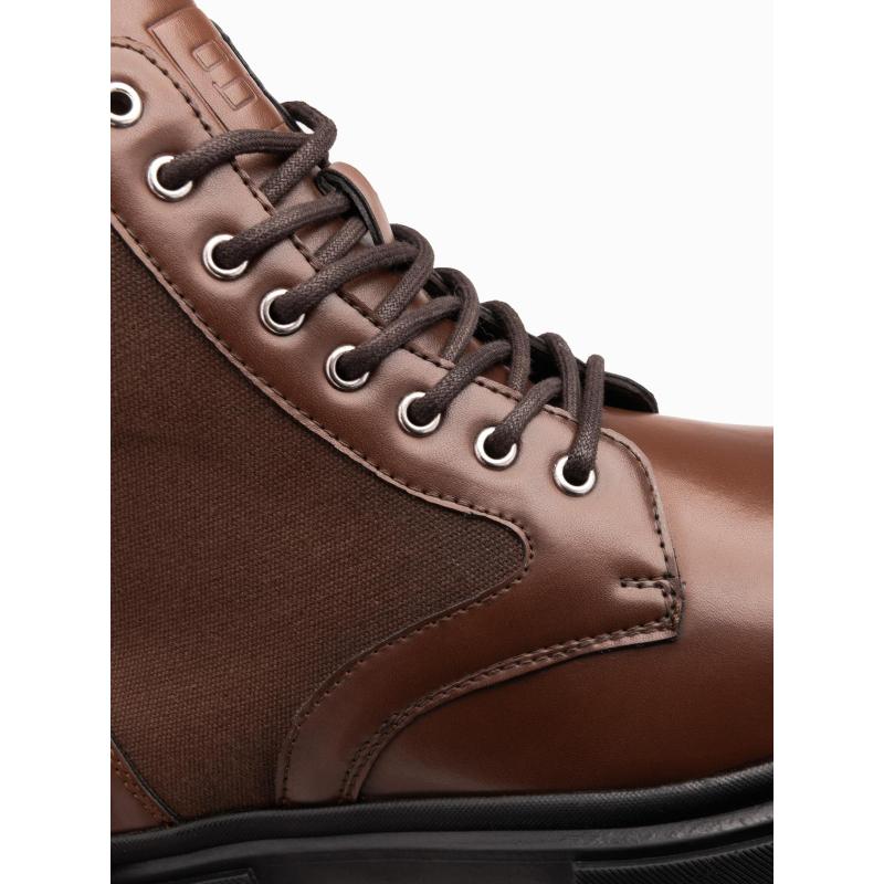 Pánske turistické topánky s vysokým zvrškom z kombinovaných materiálov – tmavohnedé V2 OM-FOBO-0174