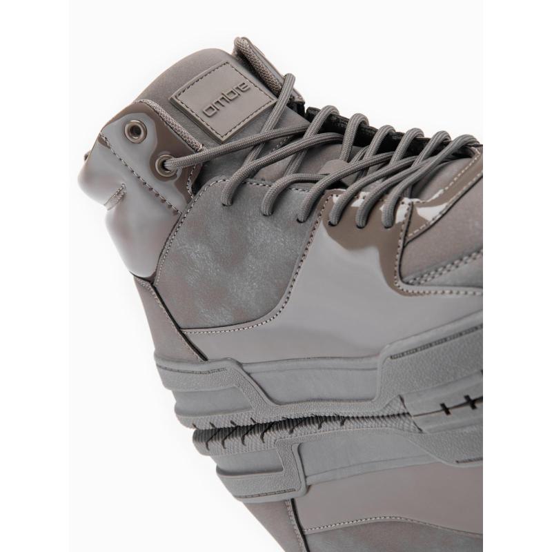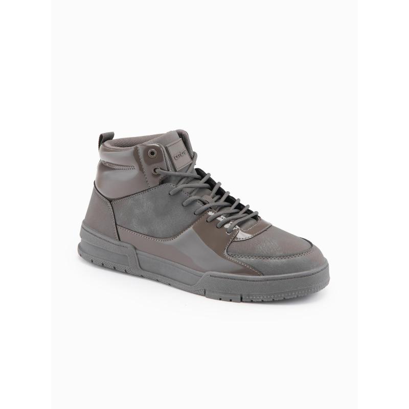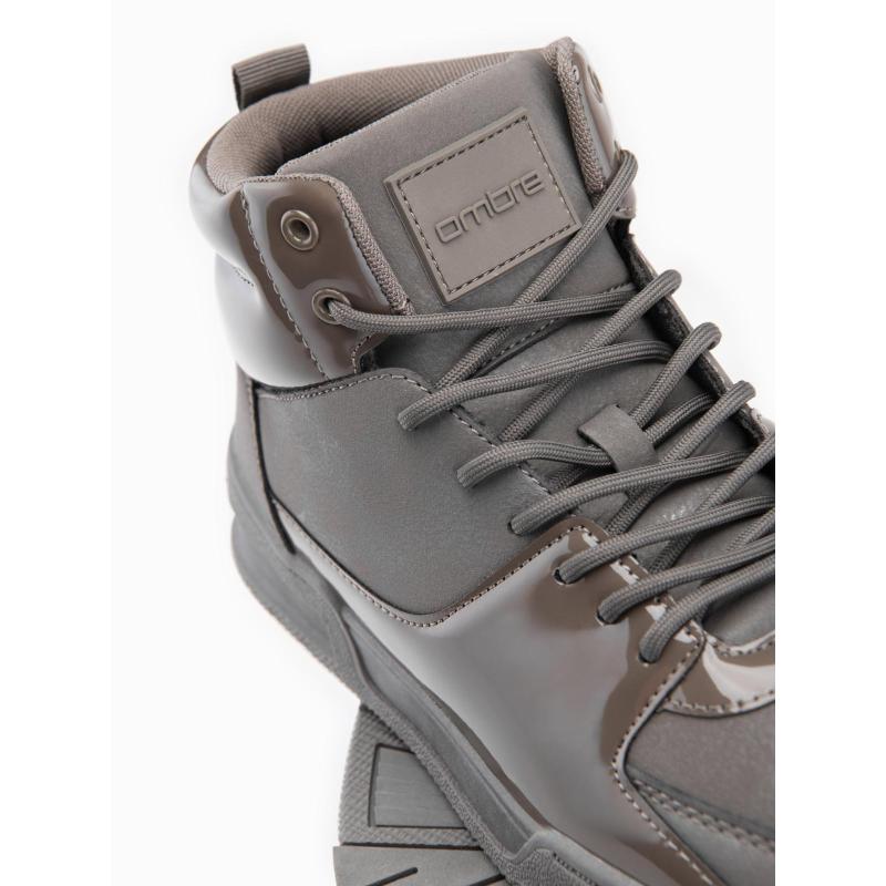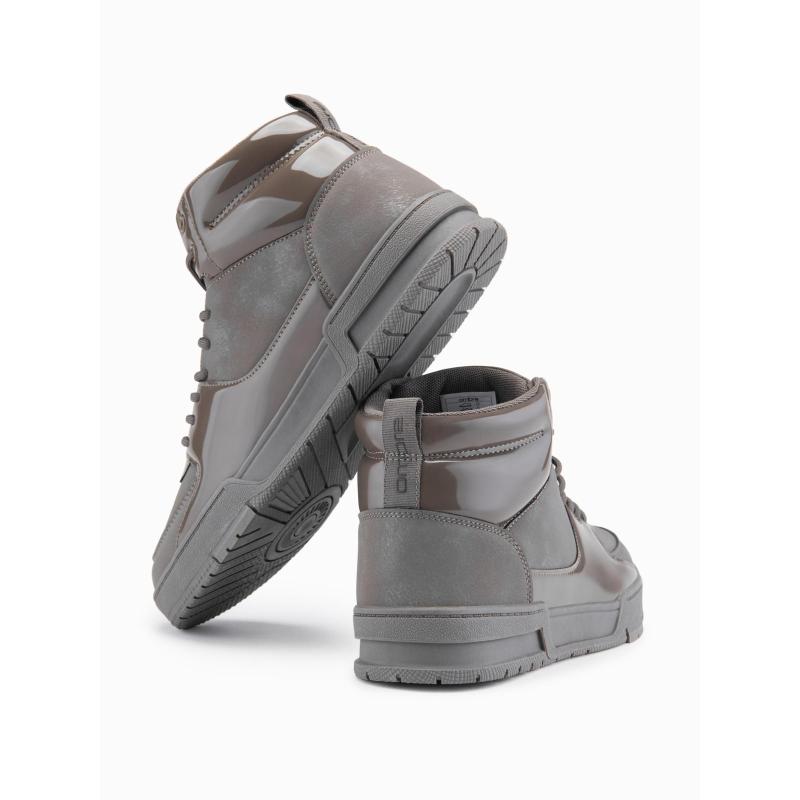 Pánske vysoké tenisky s lesklými prvkami – hnedé V4 OM-FOSH-0178