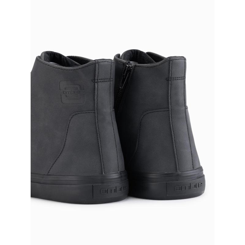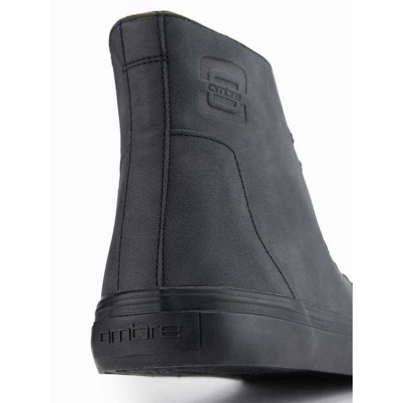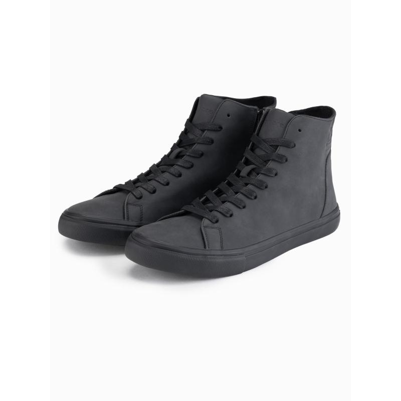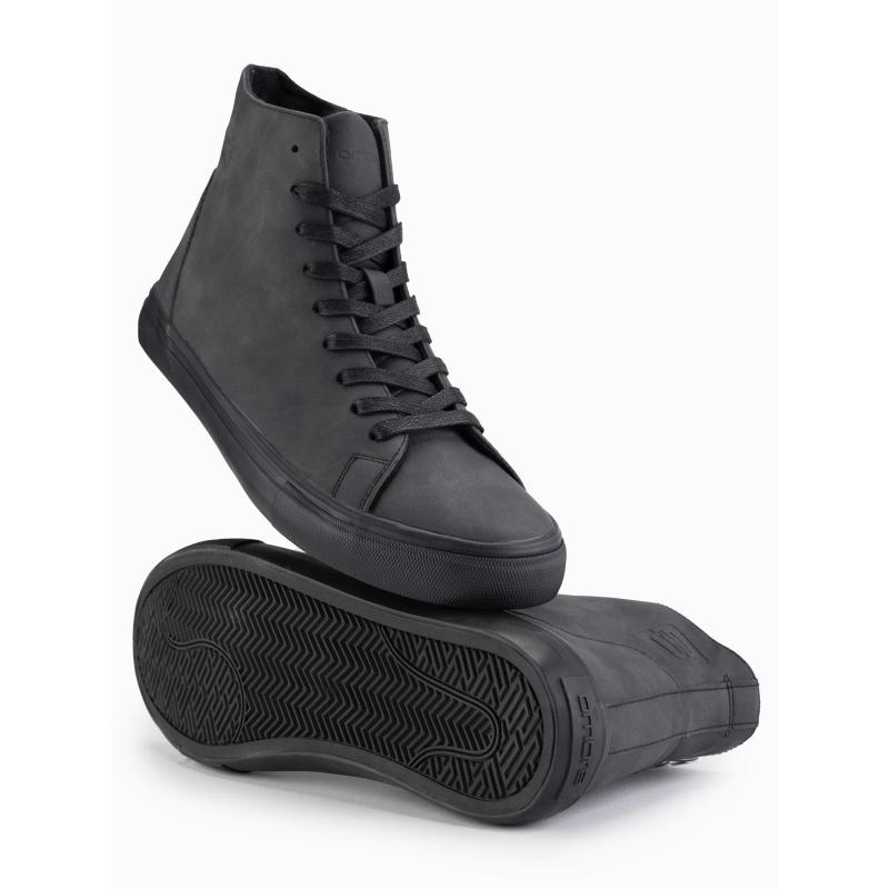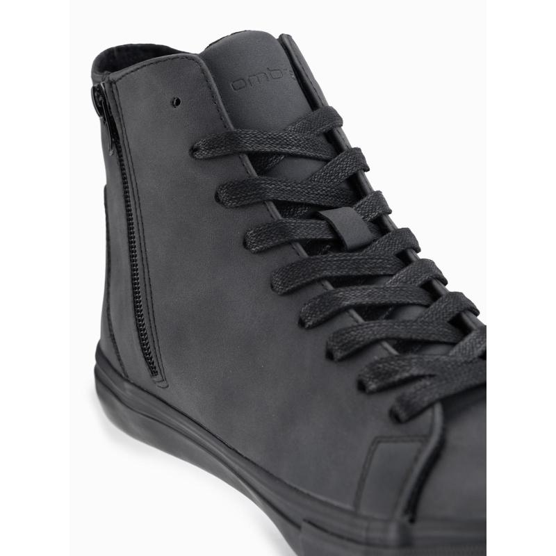 Pánske vysoké tenisky s matnou textúrou a reliéfnym logom – čierne V1 OM-FOTH-0185