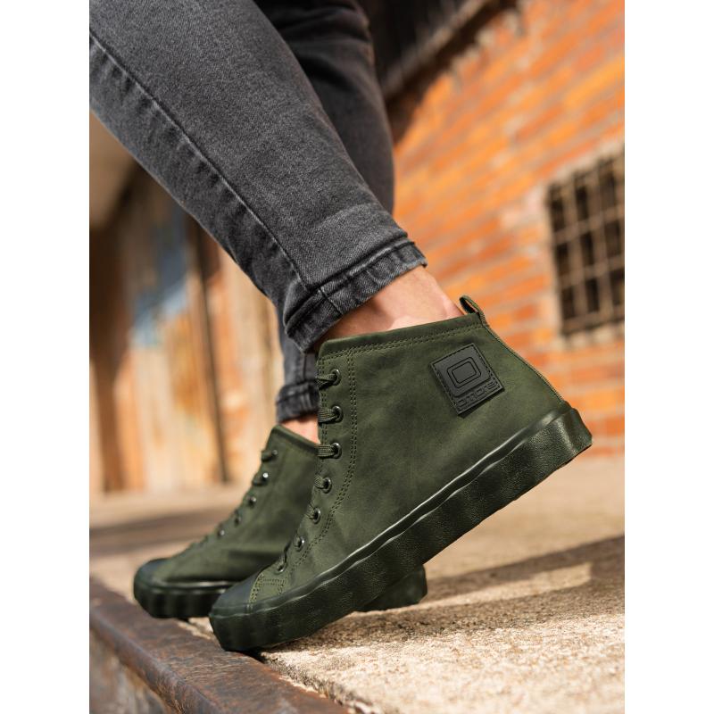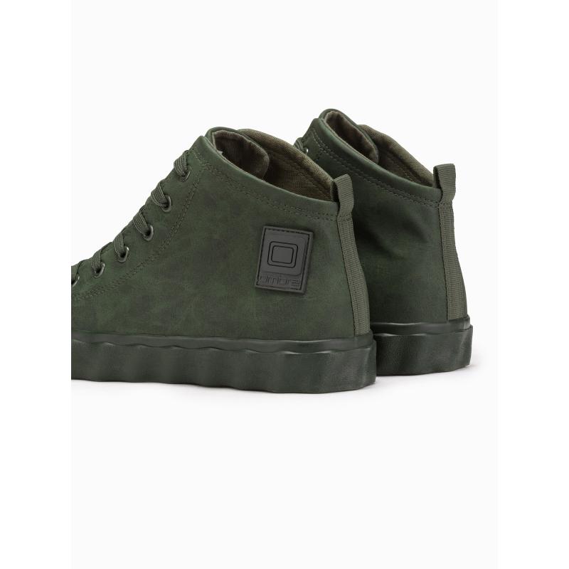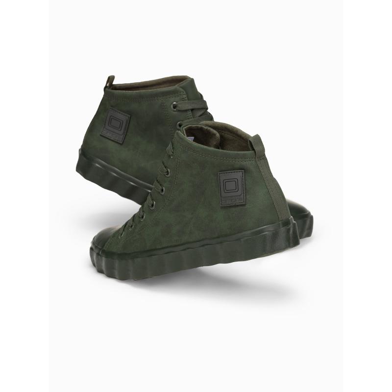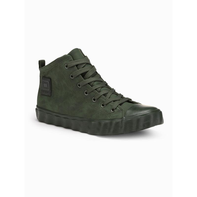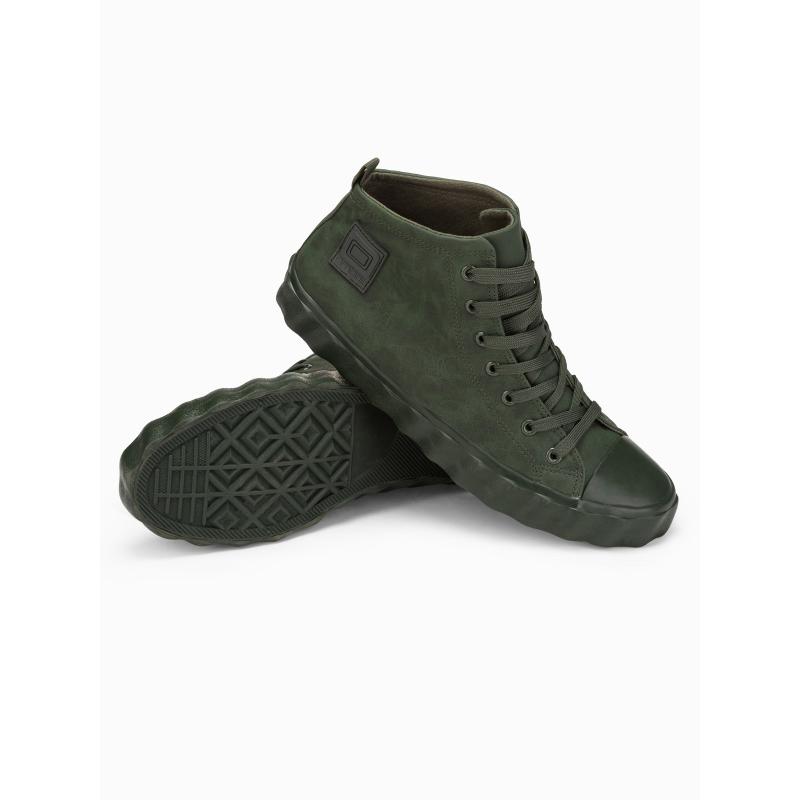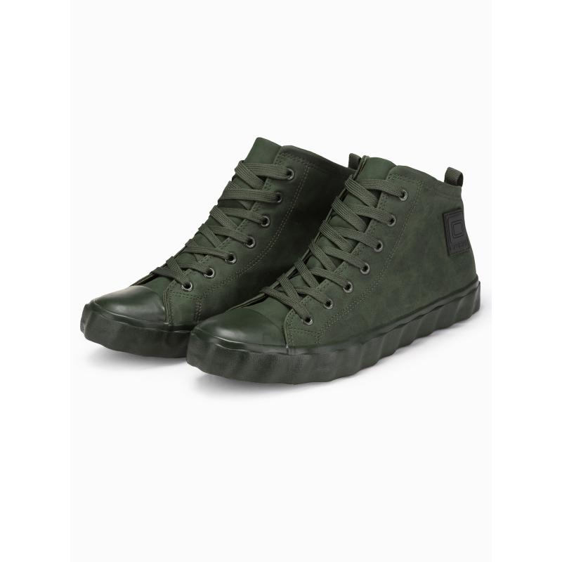 Pánske vysoké tenisky s ozdobnou vlnitou podrážkou – olivové V3 OM-FOTH-0126