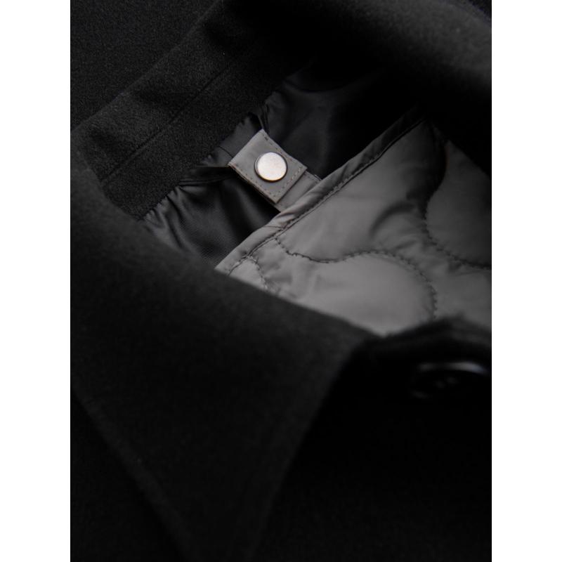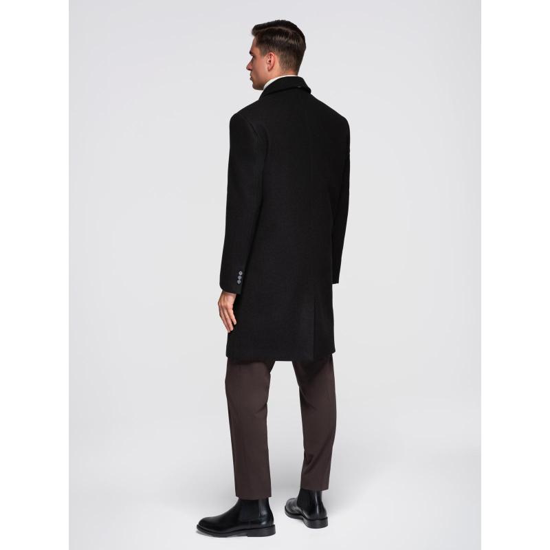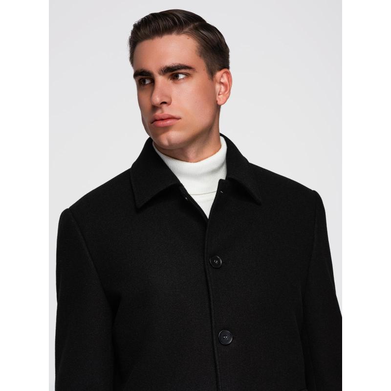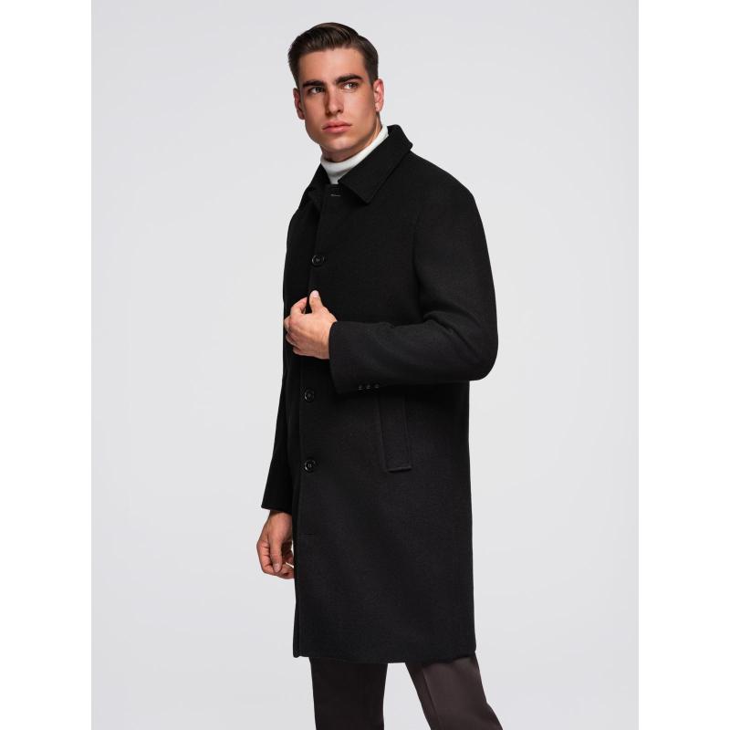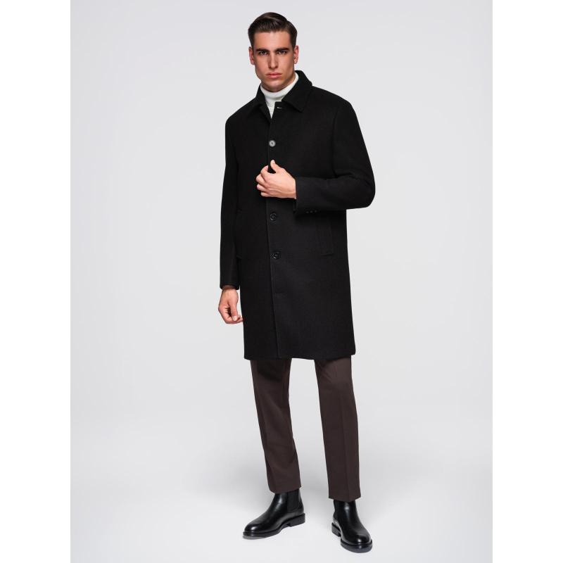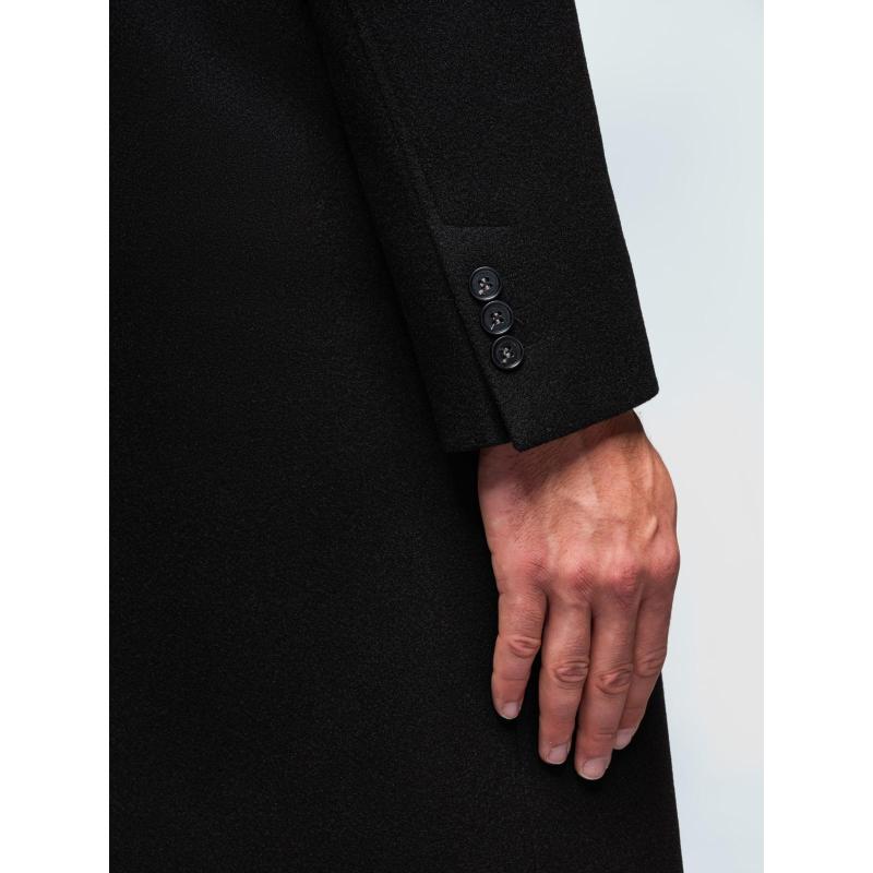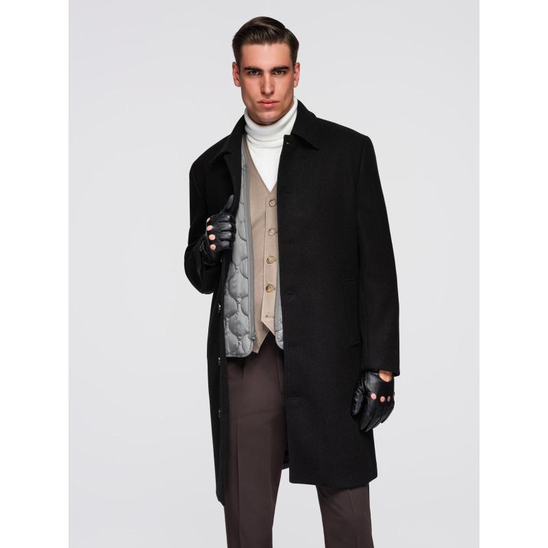 Pánsky dlhý jednořadový kabát s golierom a podšívkou – čierna V1 OM-COWC-0135
