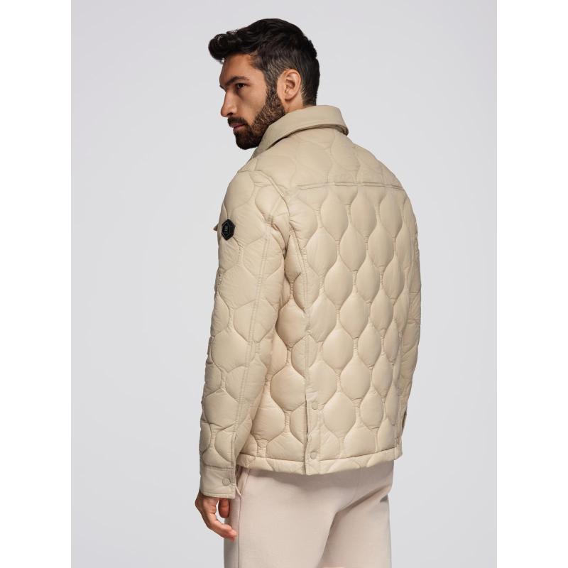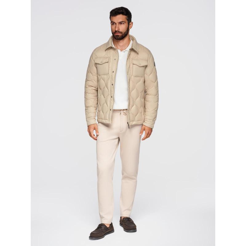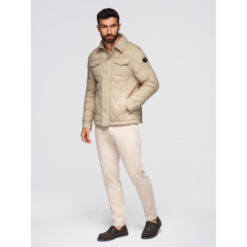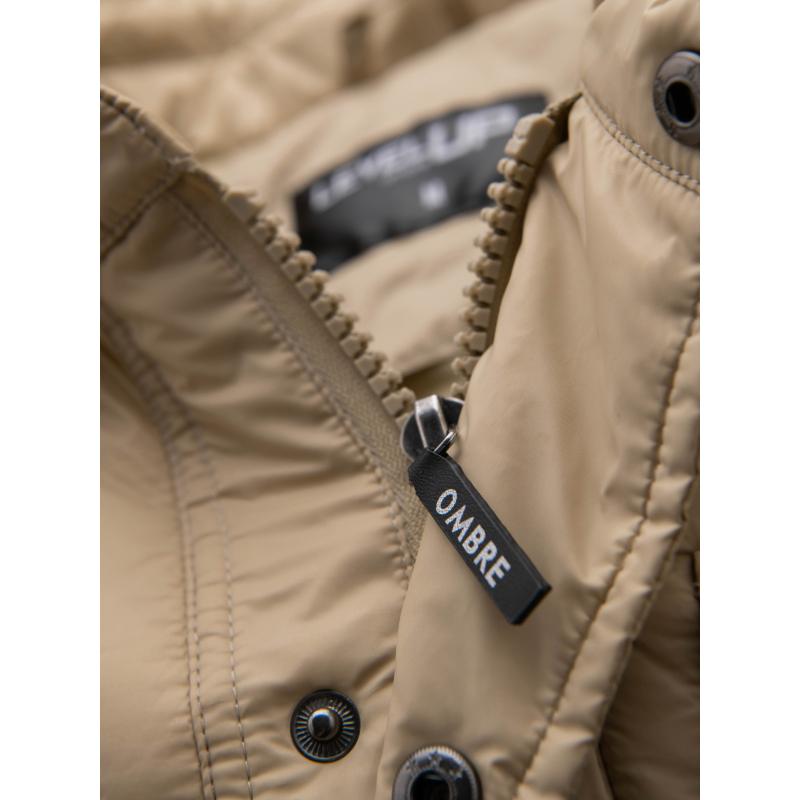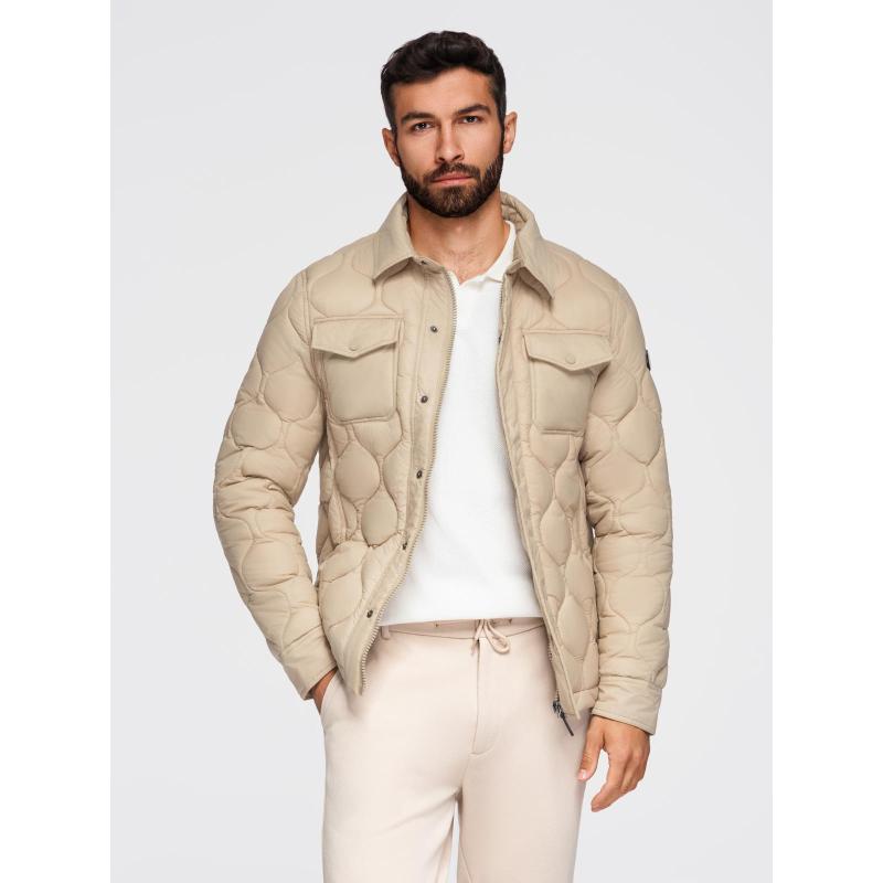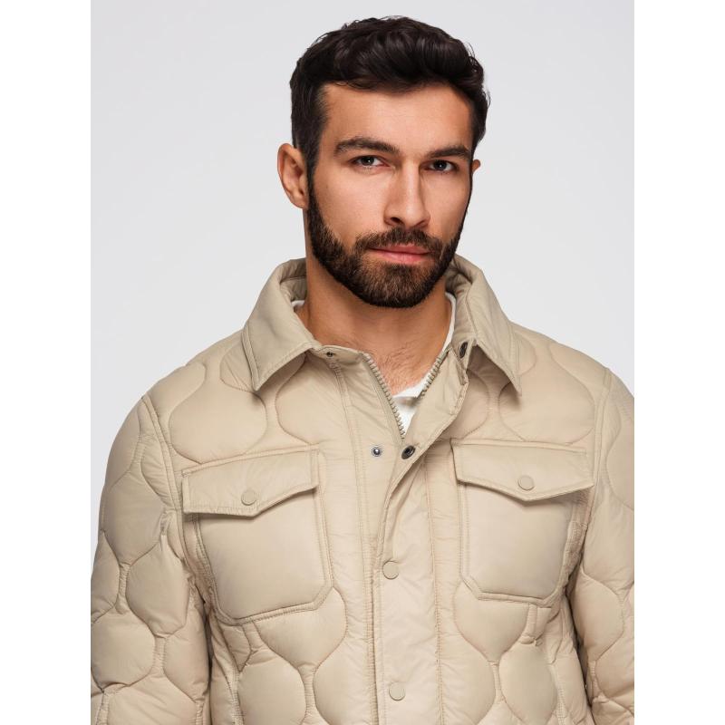 Pánsky kabát s asymetrickým zapínaním a vysokým golierom – svetlo hnedý V4 OM-COWC-0141