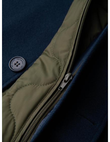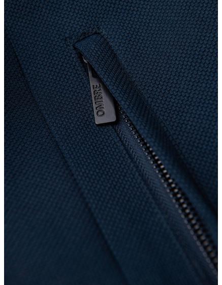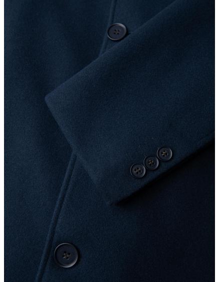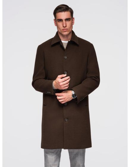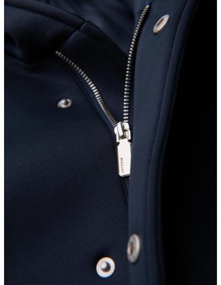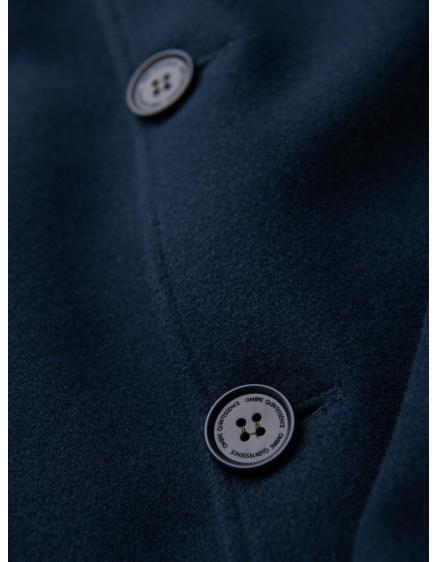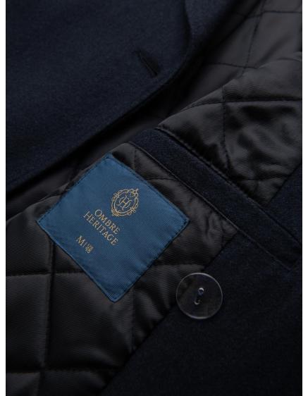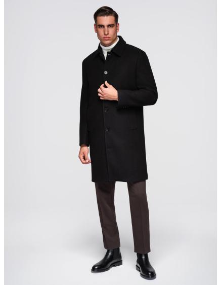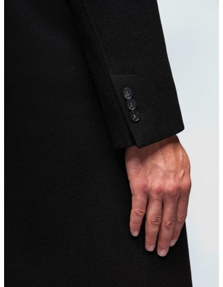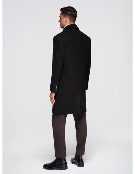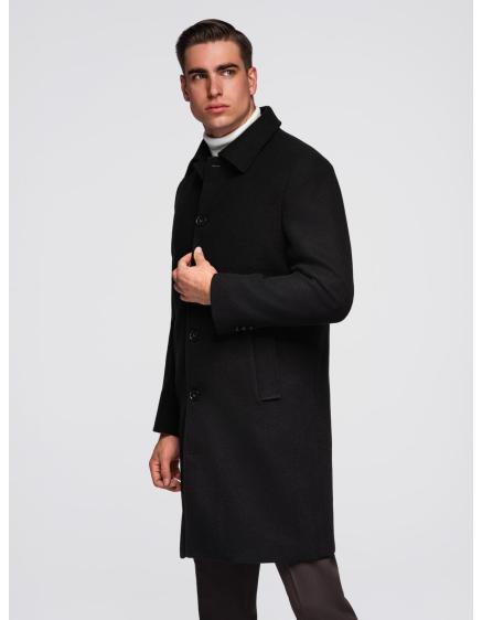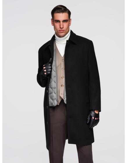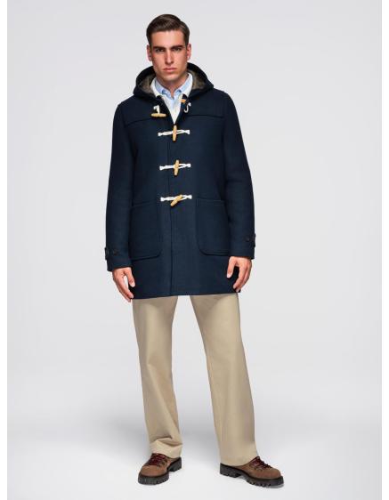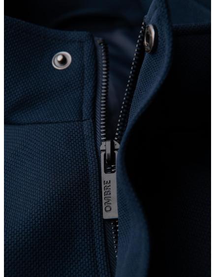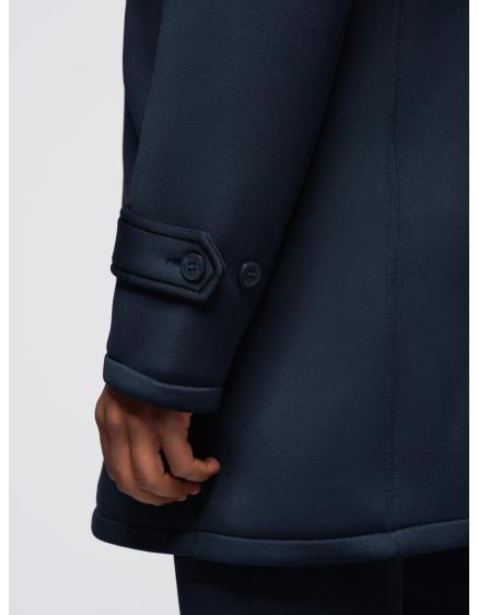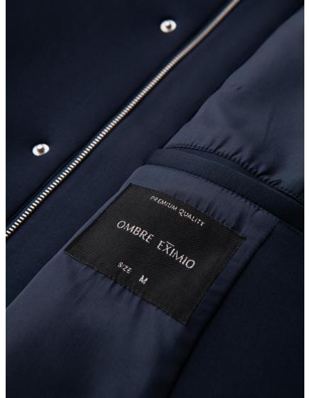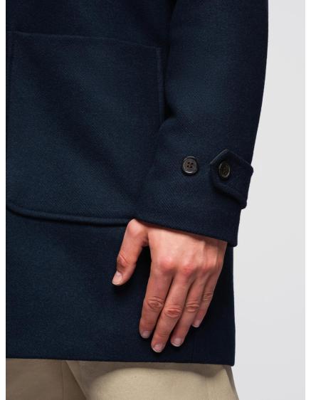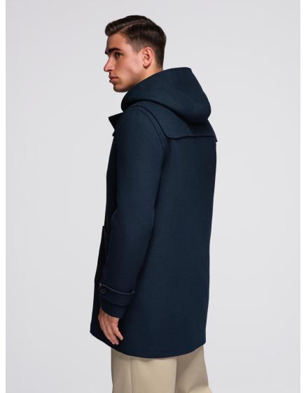 Pánsky kabát s asymetrickým zapínaním a vysokým golierom – tmavomodrý V3 OM-COWC-0141