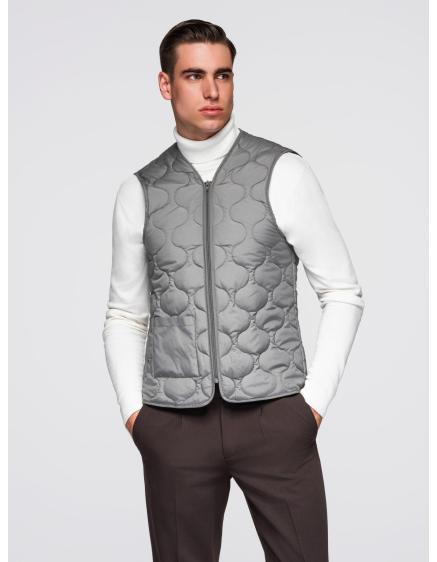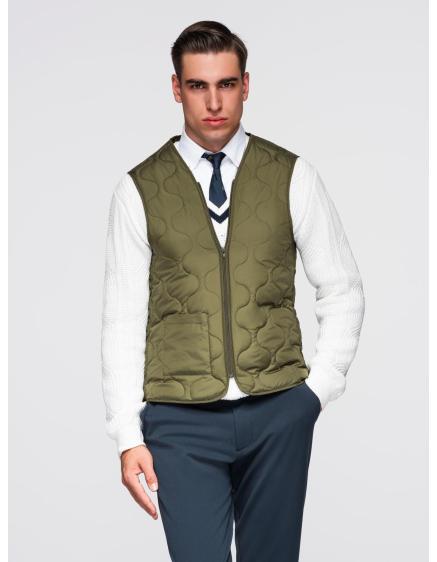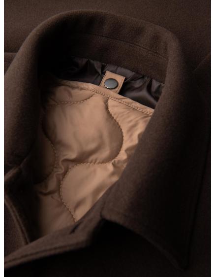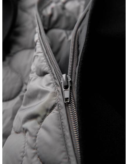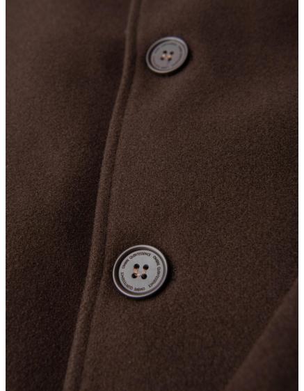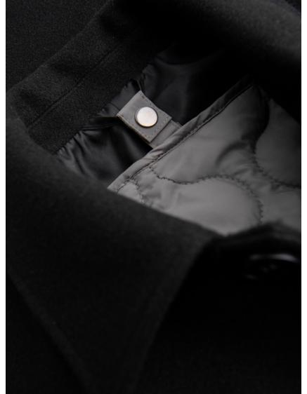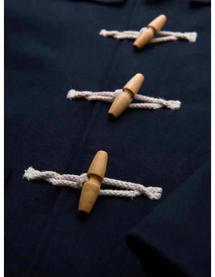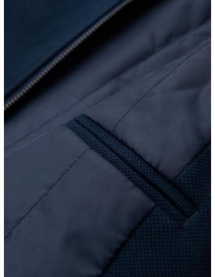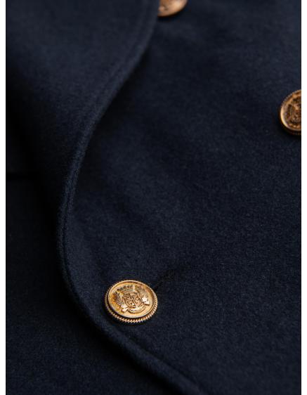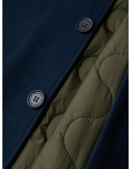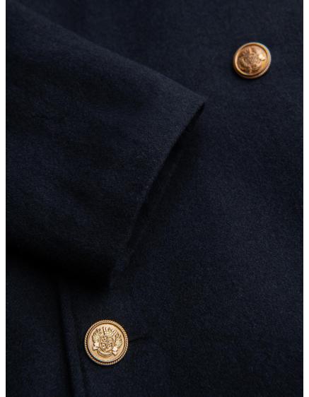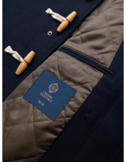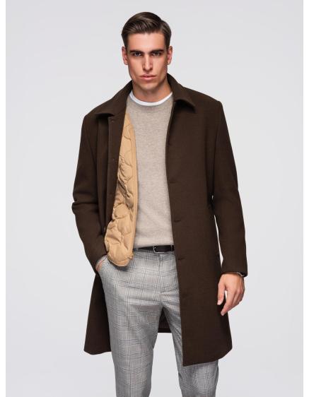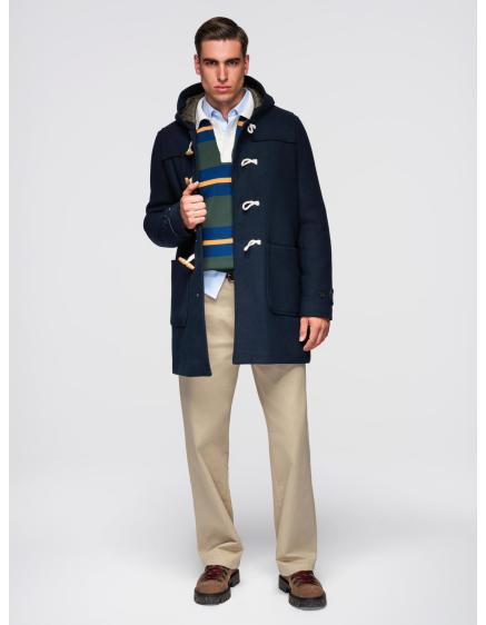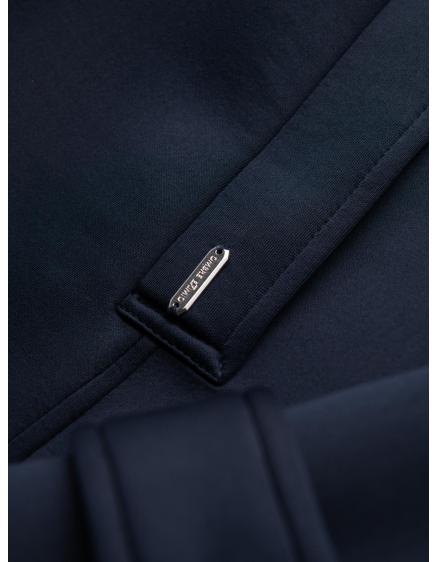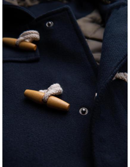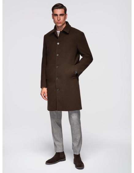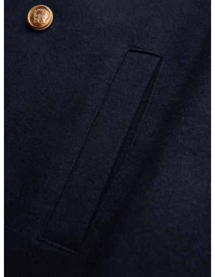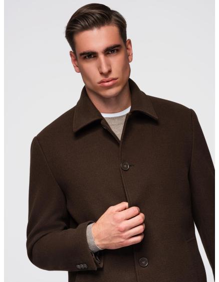 Pánsky kabát s asymetrickým zapínaním a vysokým golierom – tmavomodrý V3 OM-COWC-0141