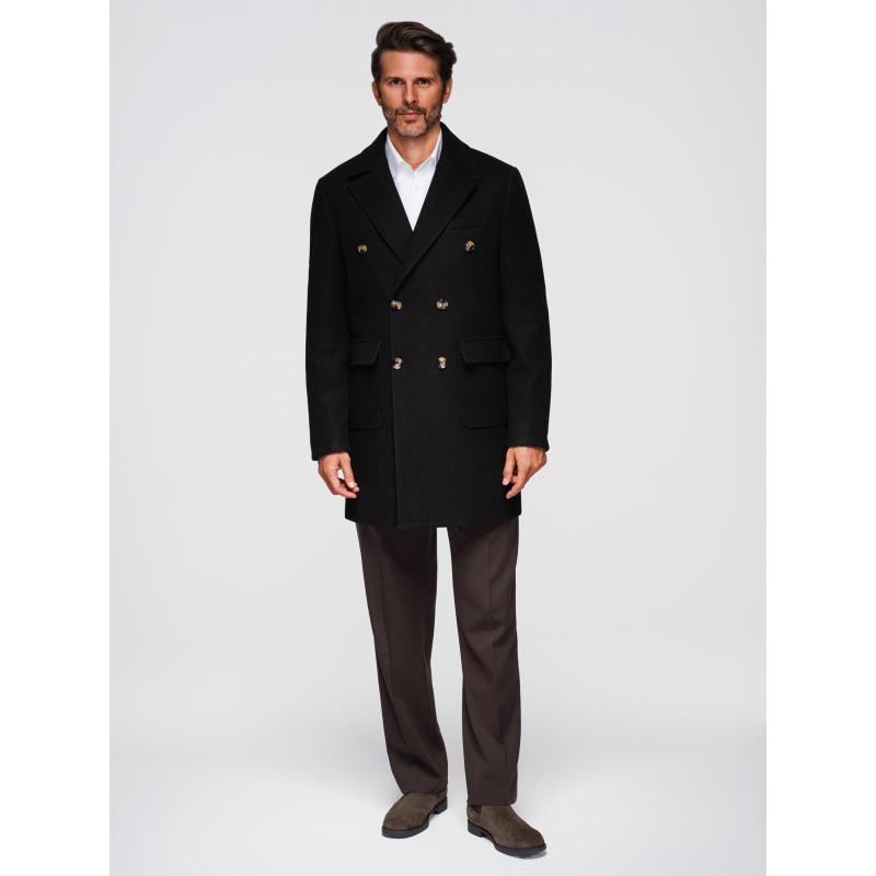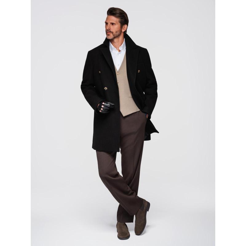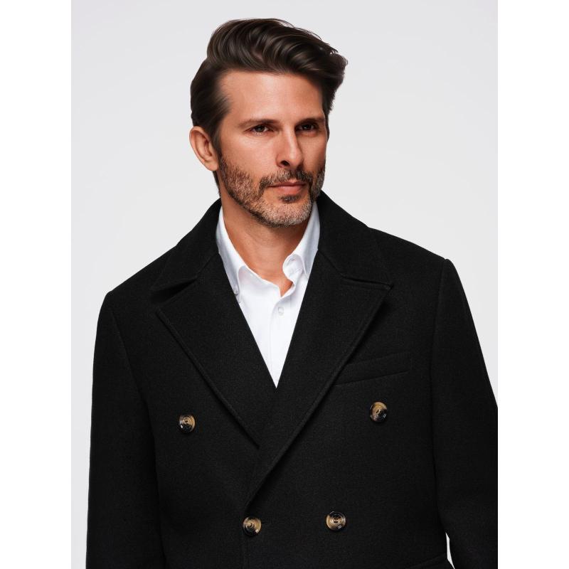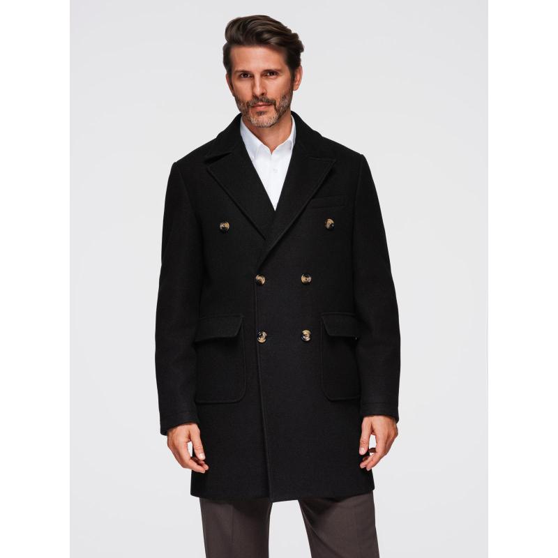 Pánsky kabát s dvojradovým zapínaním a ozdobnými gombíkmi – čierny V2 OM-COWC-0137