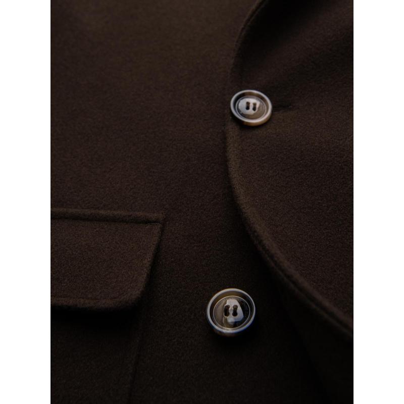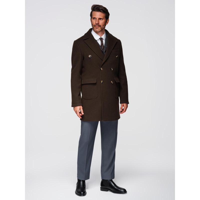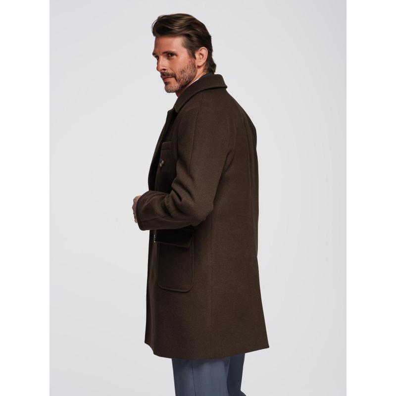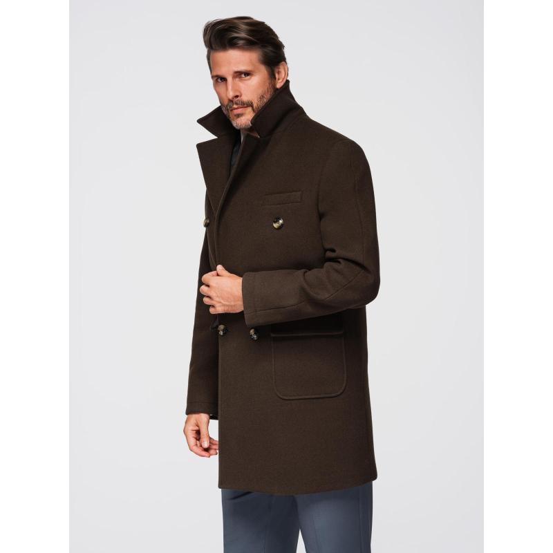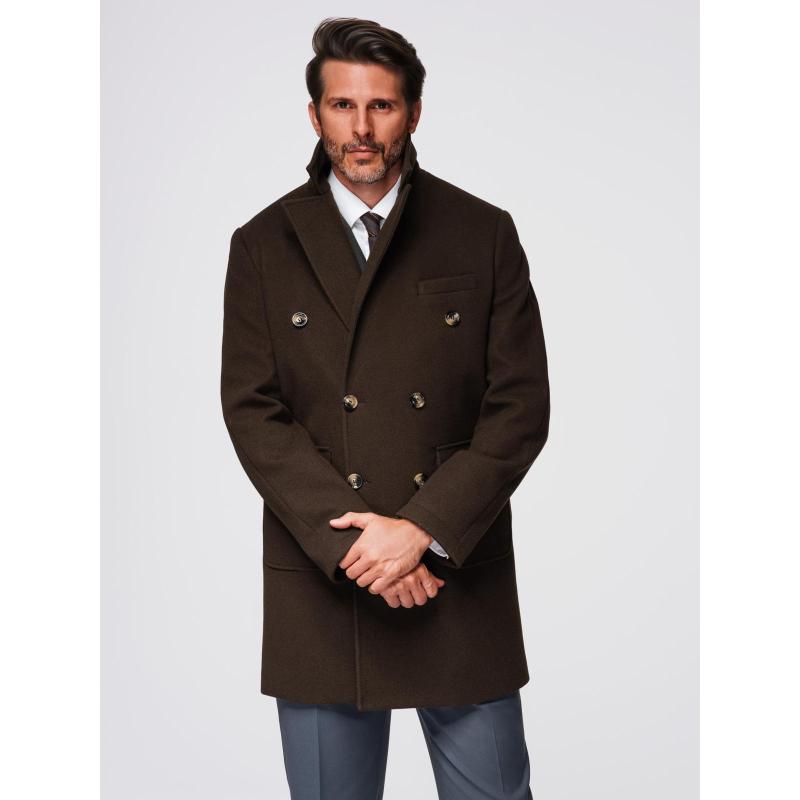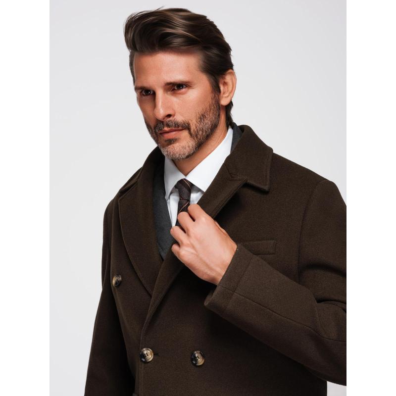 Pánsky kabát s dvojradovým zapínaním a ozdobnými gombíkmi – tmavohnedý V3 OM-COWC-0137