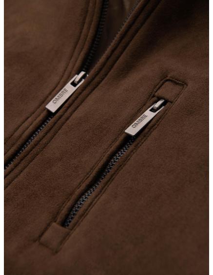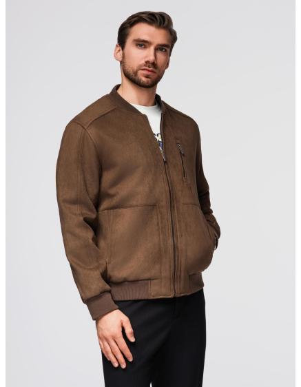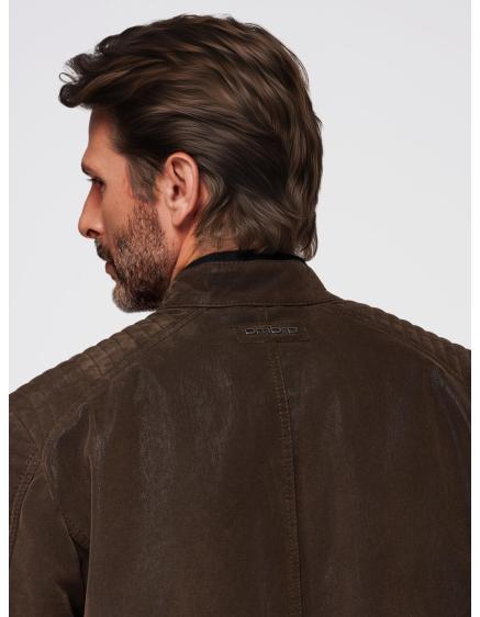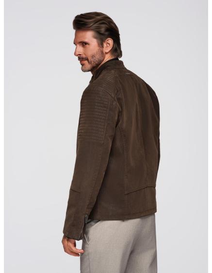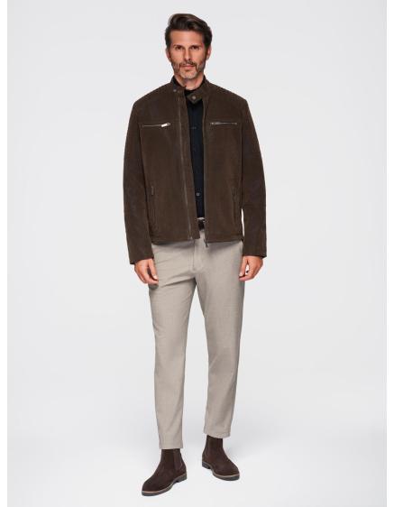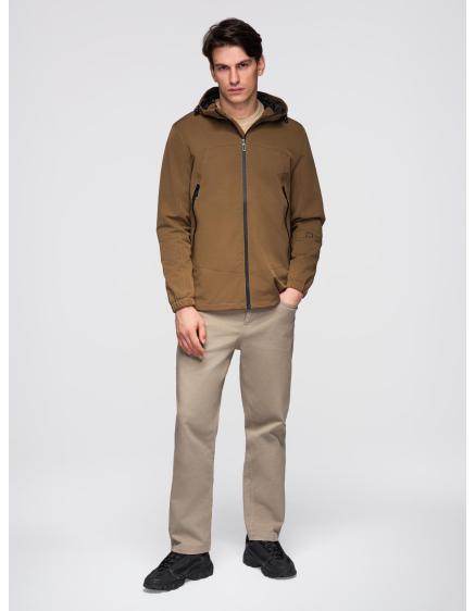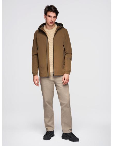 Pánsky parka kabát s vlnou a kapucňou – khaki V2 OM-COWC-0132