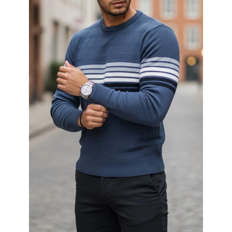 Pánsky pruhovaný sveter, modrý
