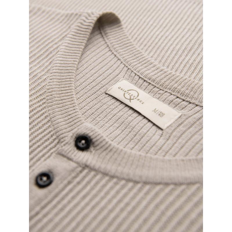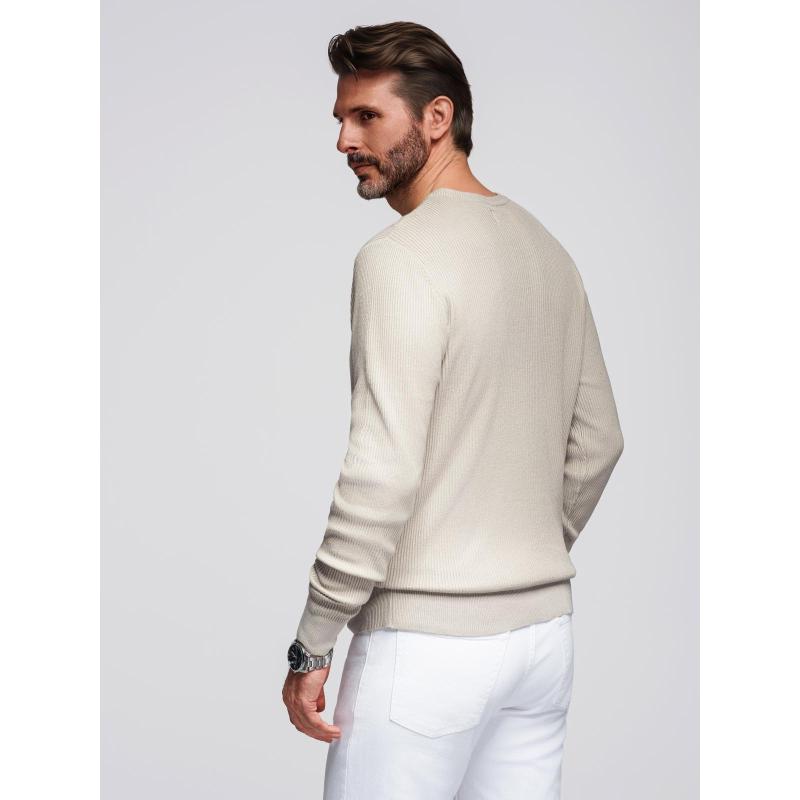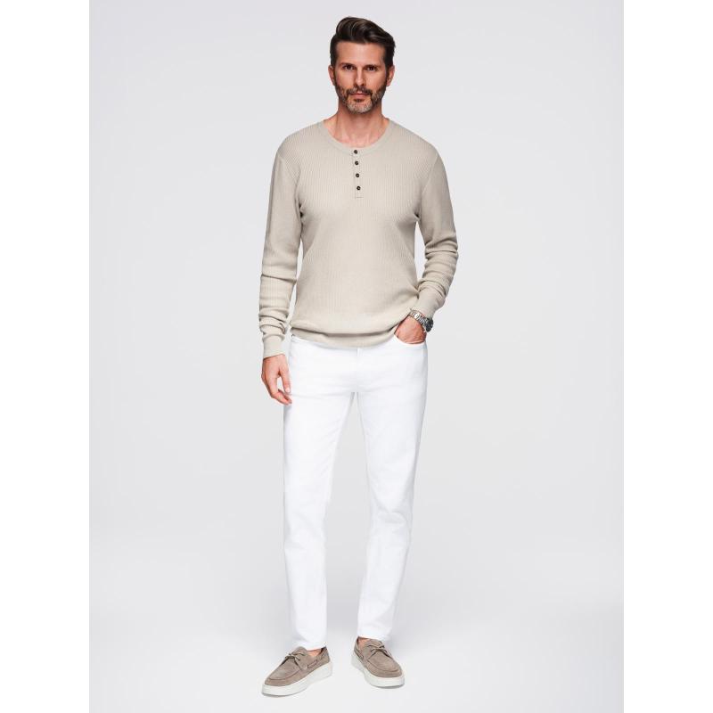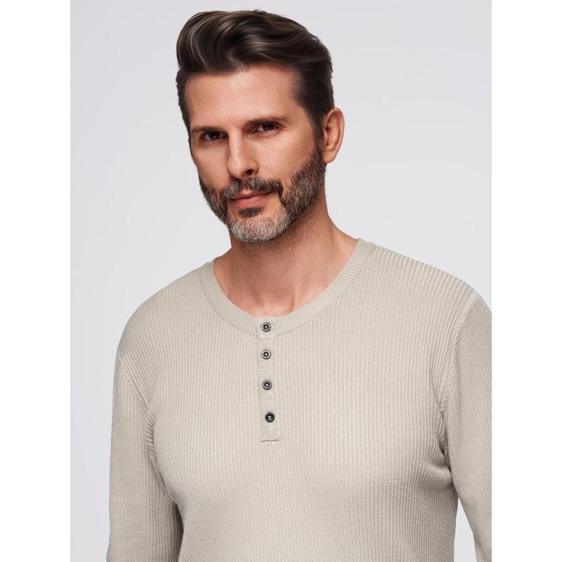 Pánsky pruhovaný sveter s gombíkmi pri výstrihu – béžový V3 OM-SWSW-0182
