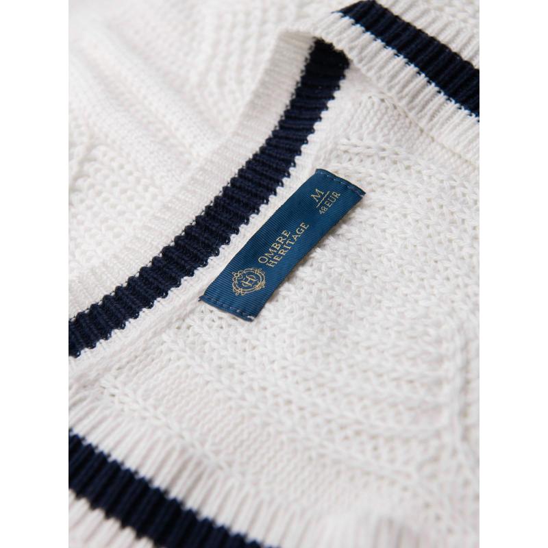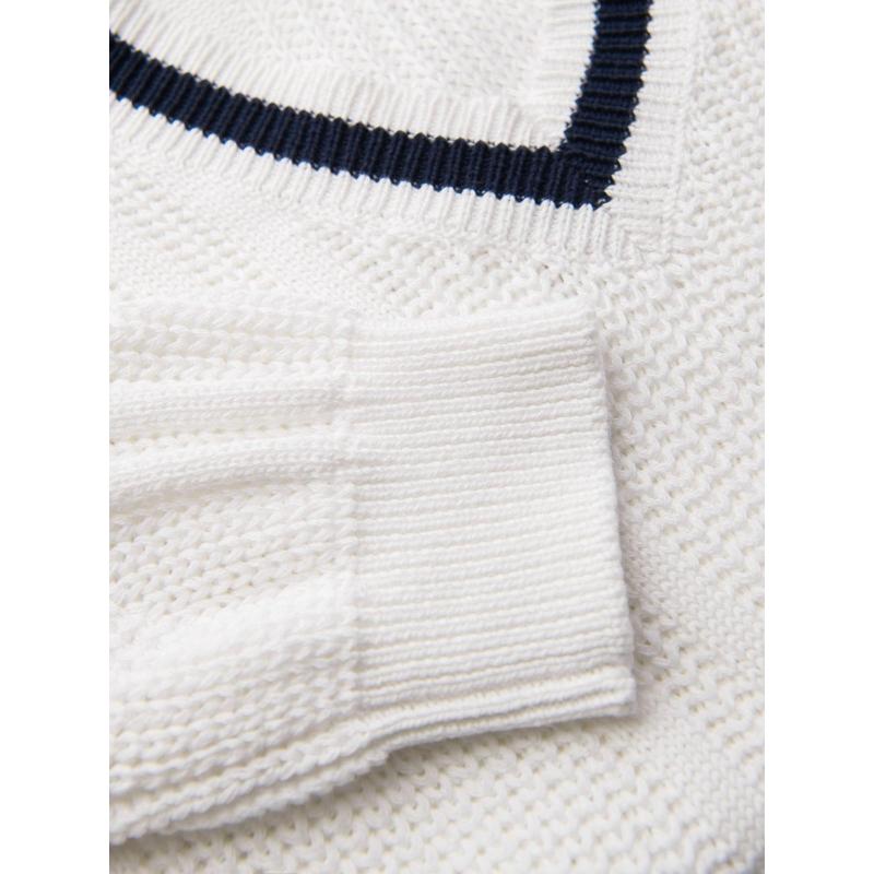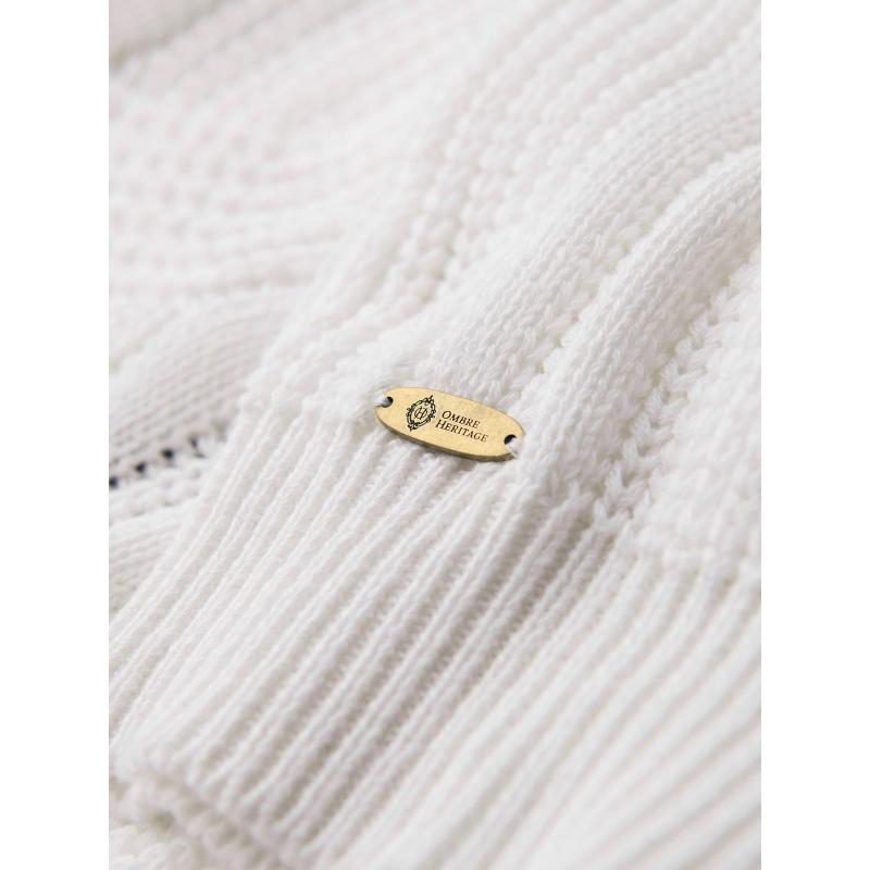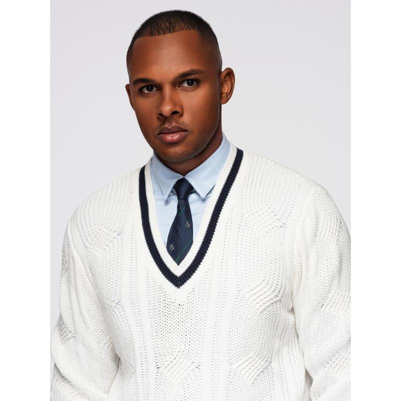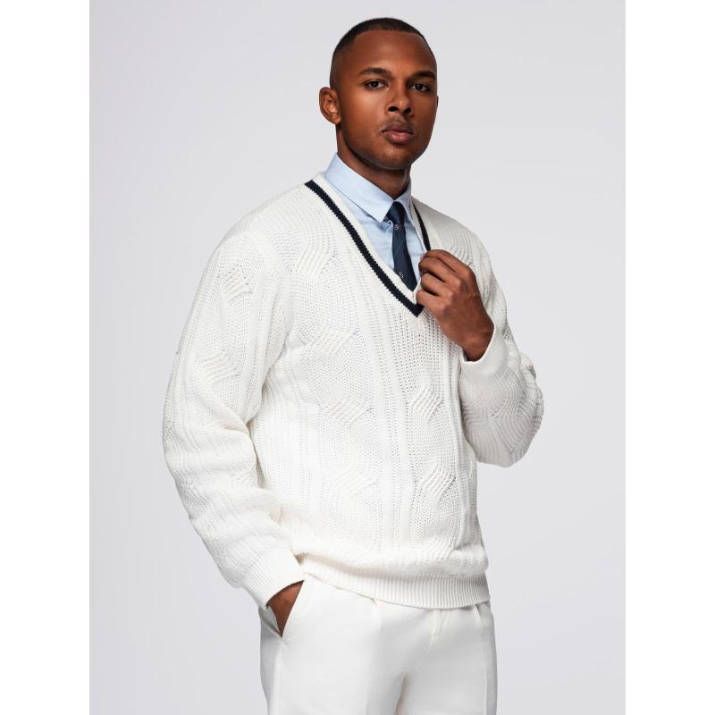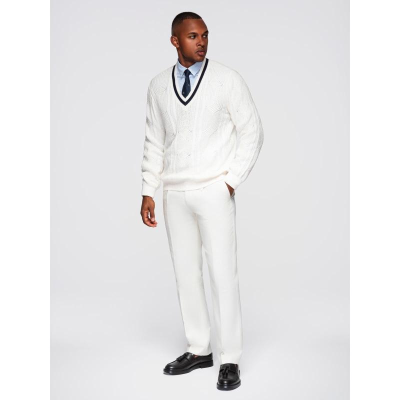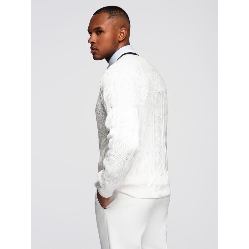 Pánsky sveter s kockovaným vzorom a okrúhlym výstrihom – biely V1 OM-SWSW-0151