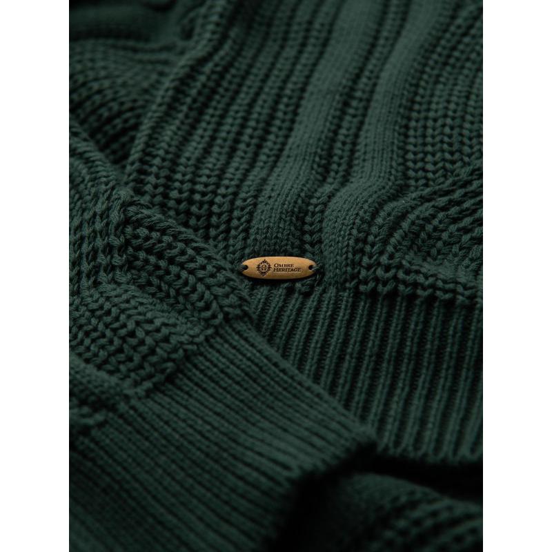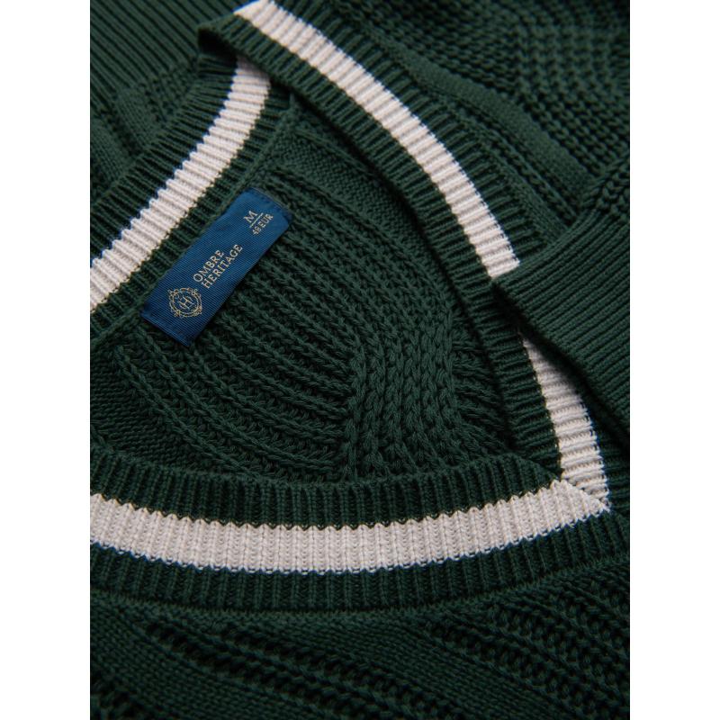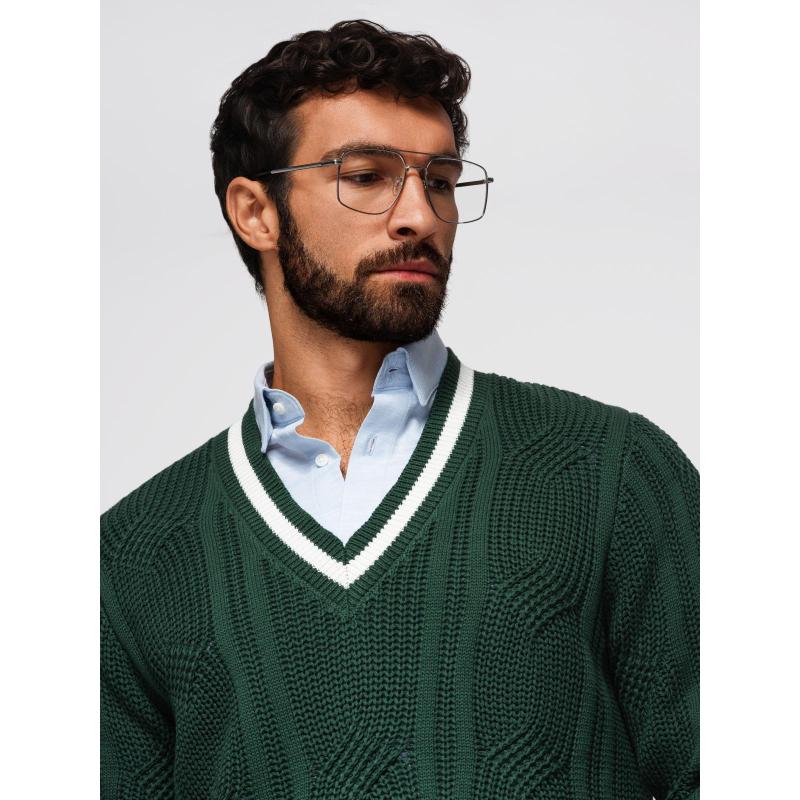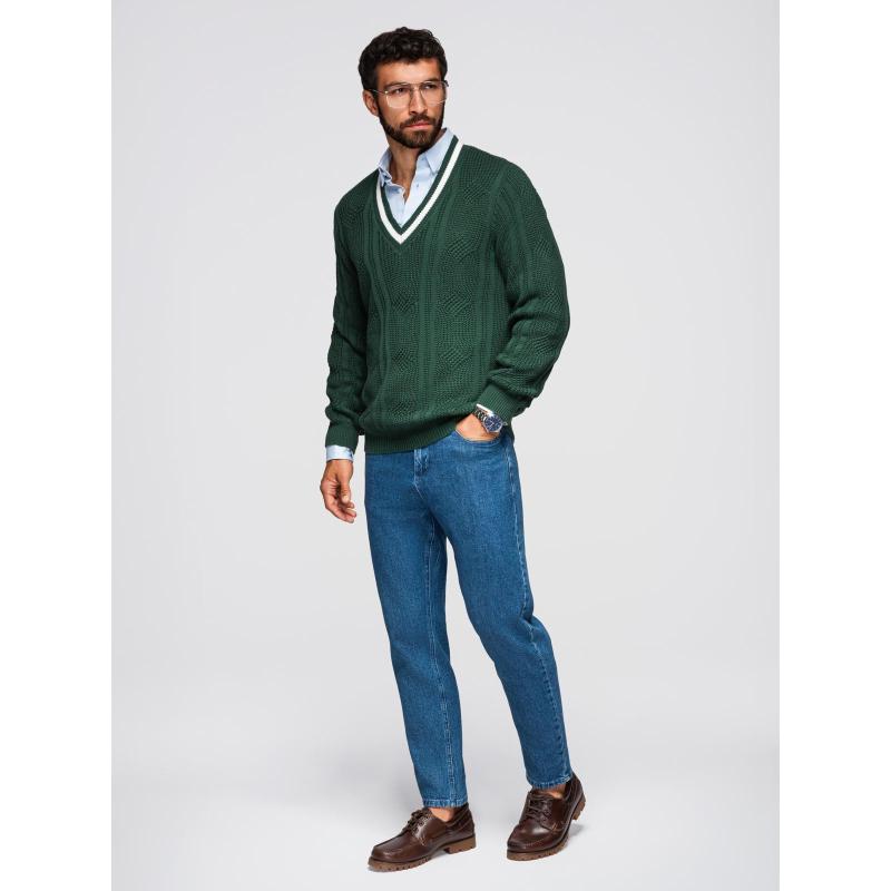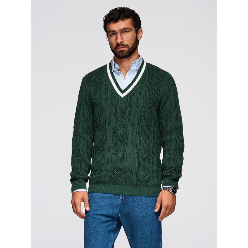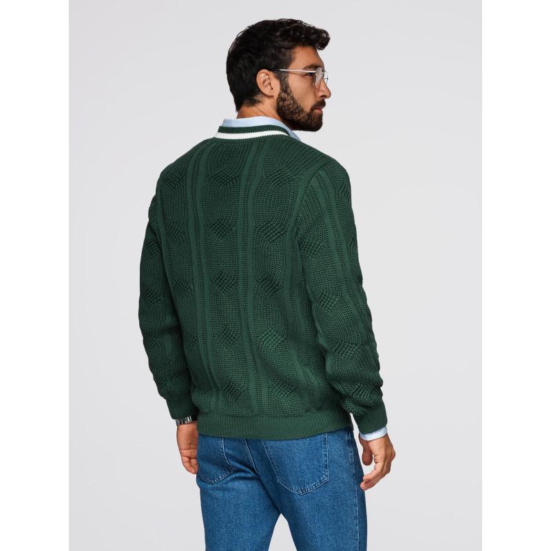 Pánsky sveter s kockovaným vzorom a okrúhlym výstrihom – zelený V3 OM-SWSW-0151