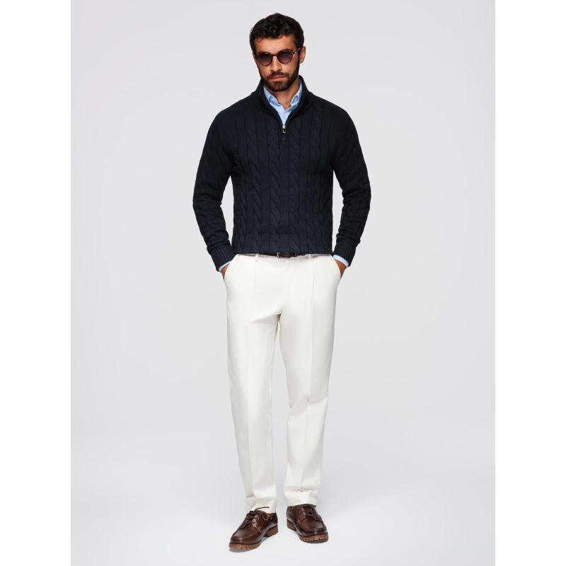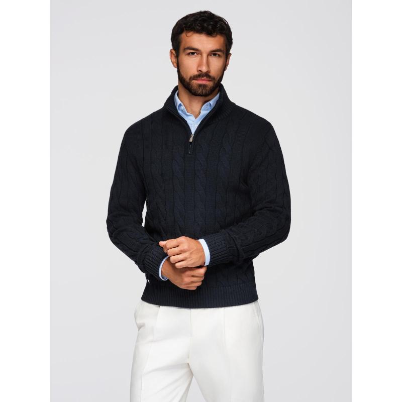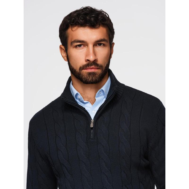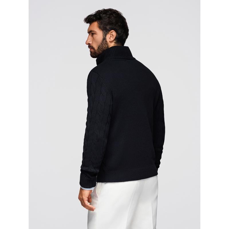 Pánsky sveter s kostkovaným vzorom, rolákom a zipsom – čierny V2 OM-SWZS-0138