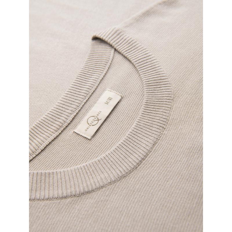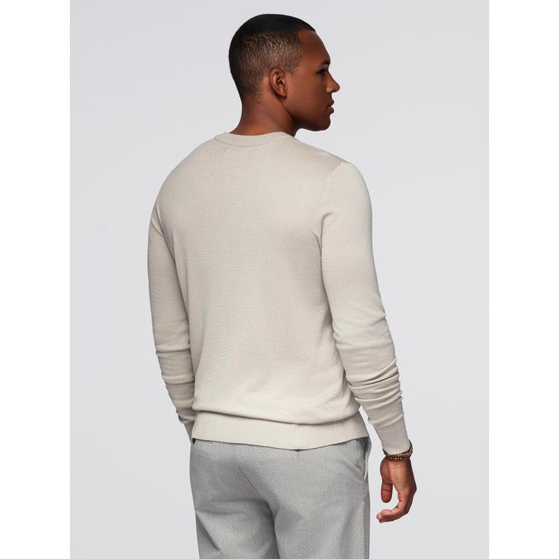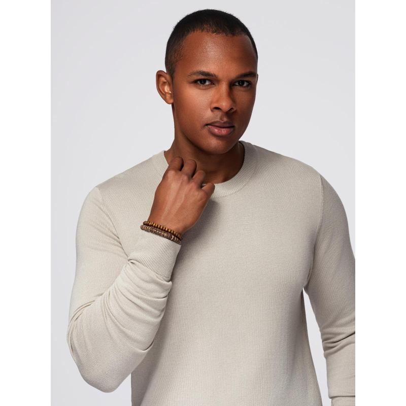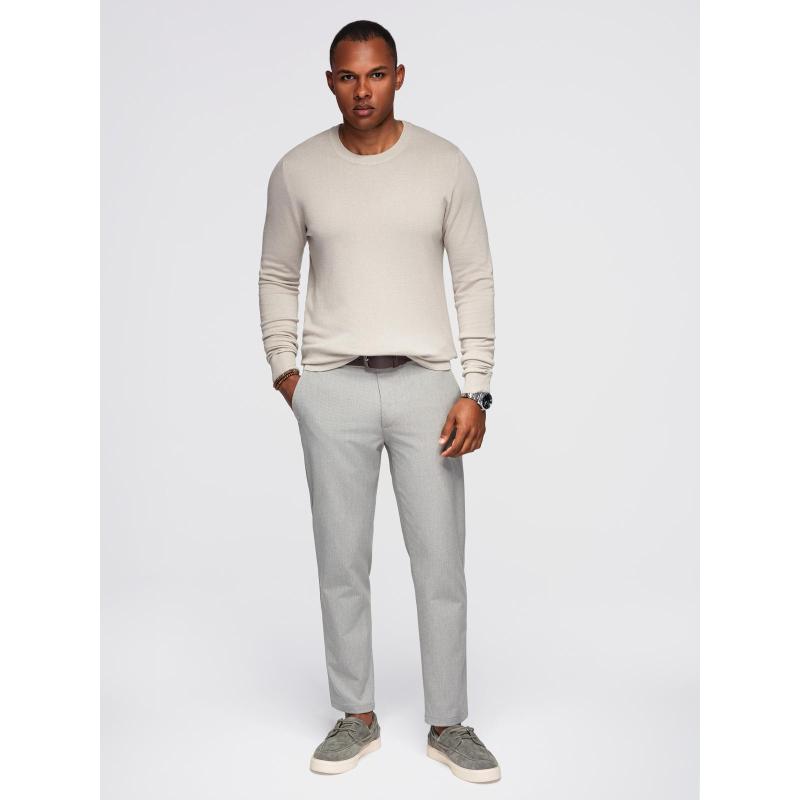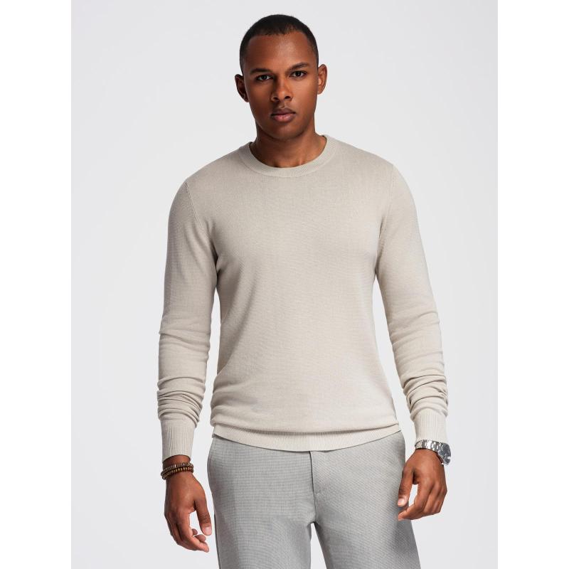 Pánsky sveter s okrúhlym výstrihom z elastického úpletu s klasickým vzorom – béžový V3 OM-SWSW-0183