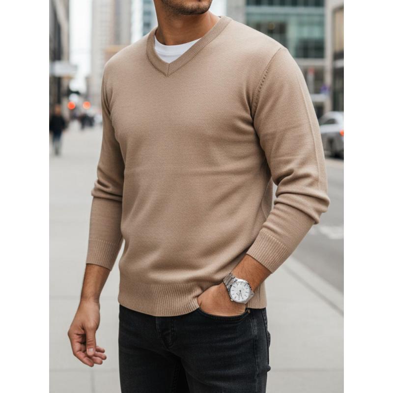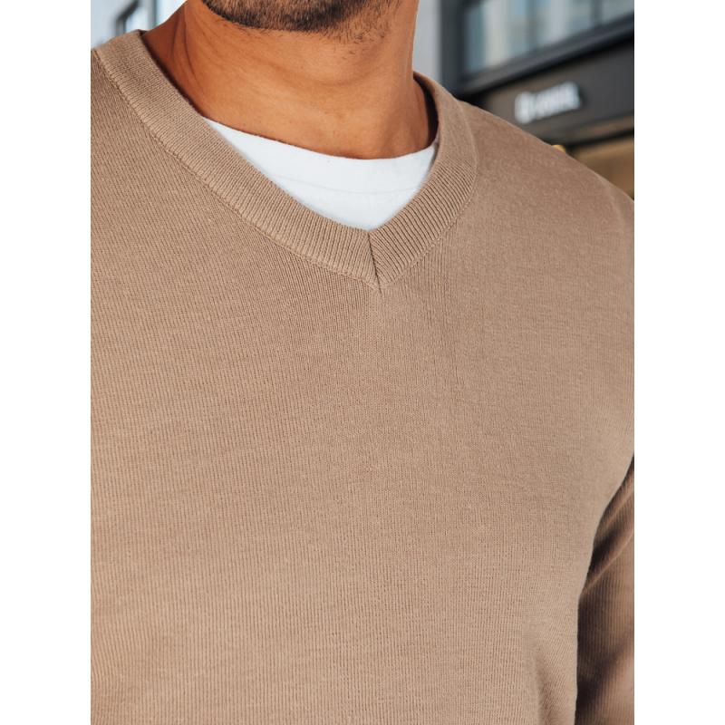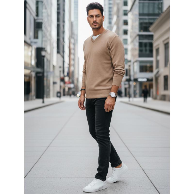 Pánsky sveter s výstrihom do V, kamelová farba