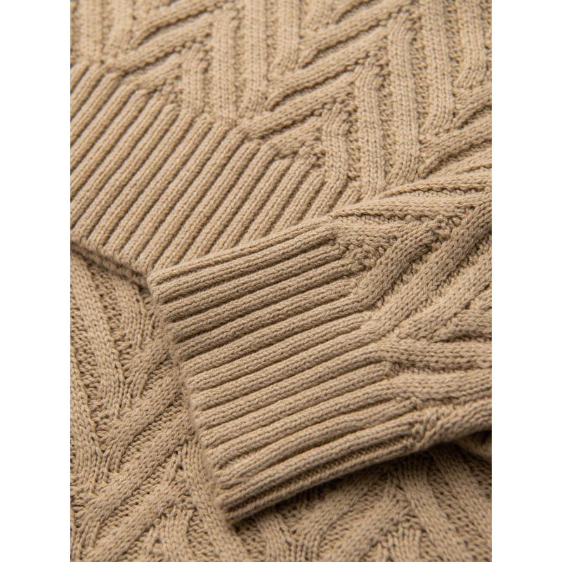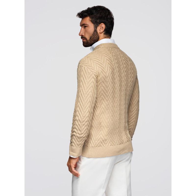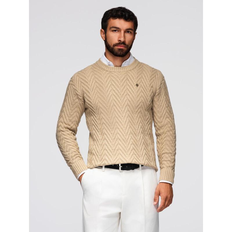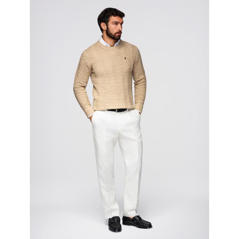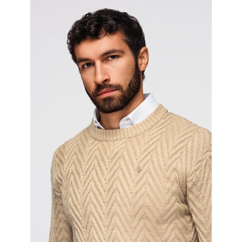 Pánsky sveter so zigzagovým vzorom – pieskový V1 OM-SWSW-0147