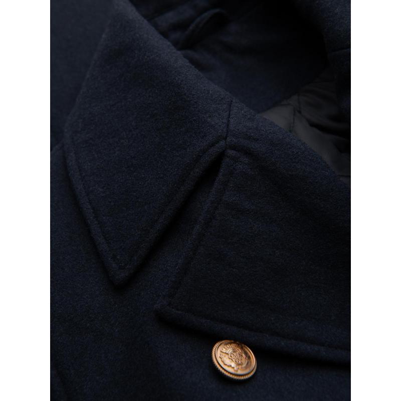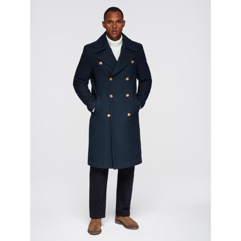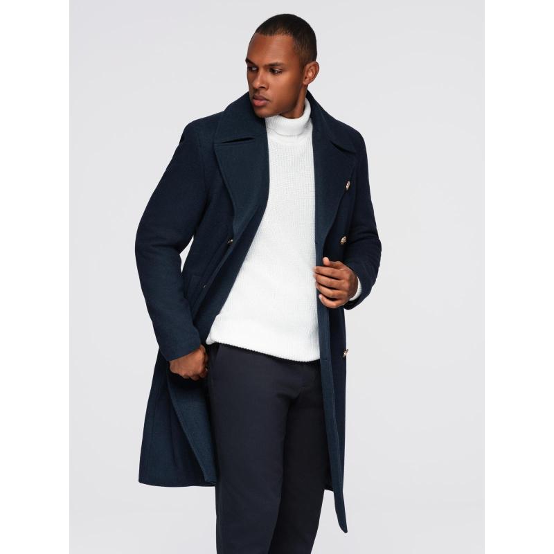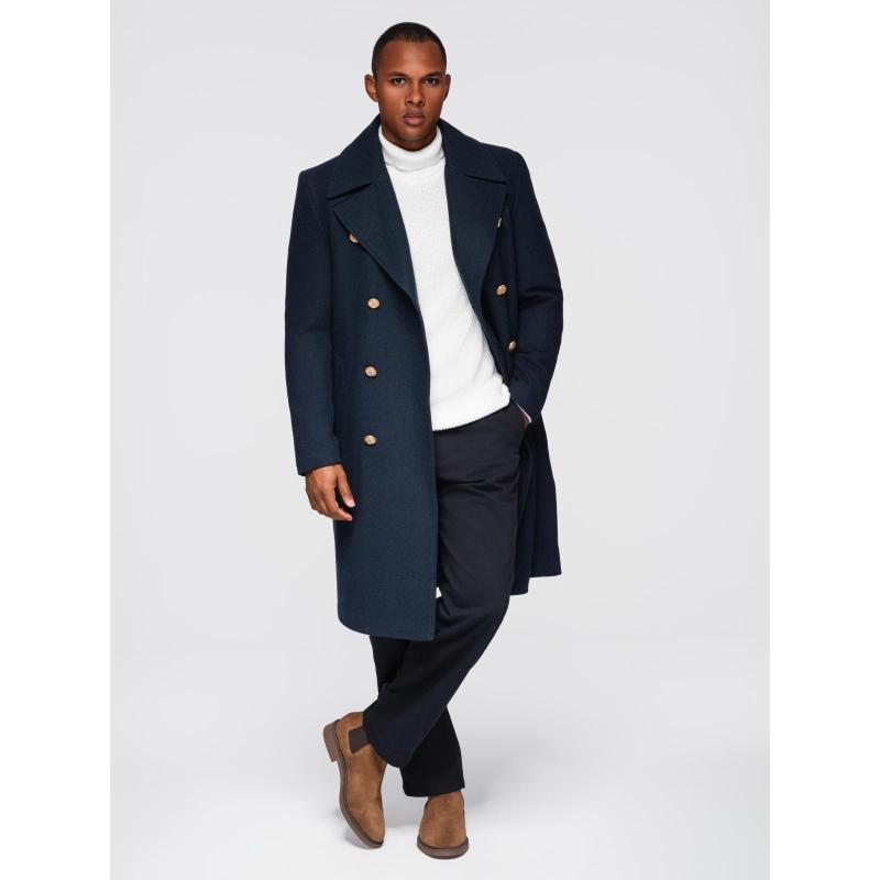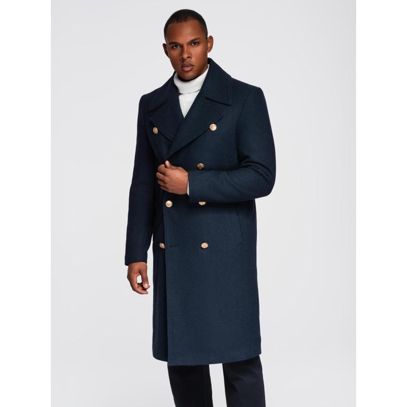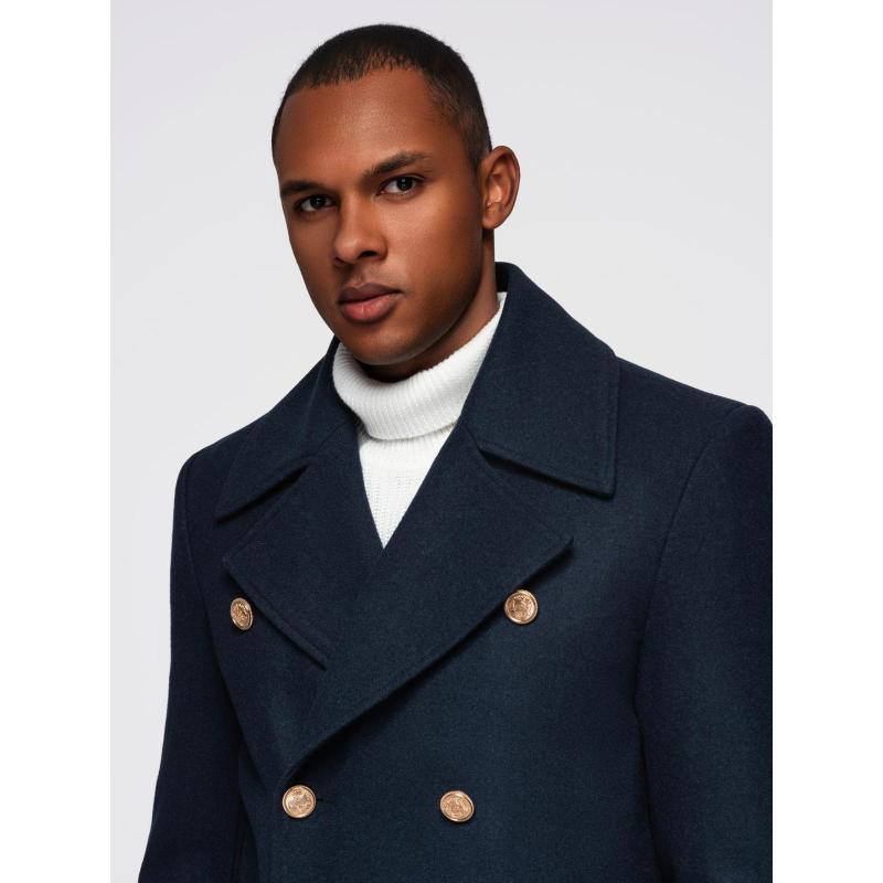 Pánsky tmavomodrý dvojradový vlnený kabát – tmavomodrá V1 OM-COWC-0134