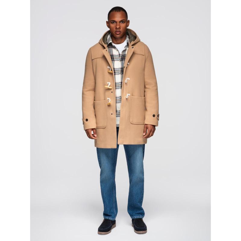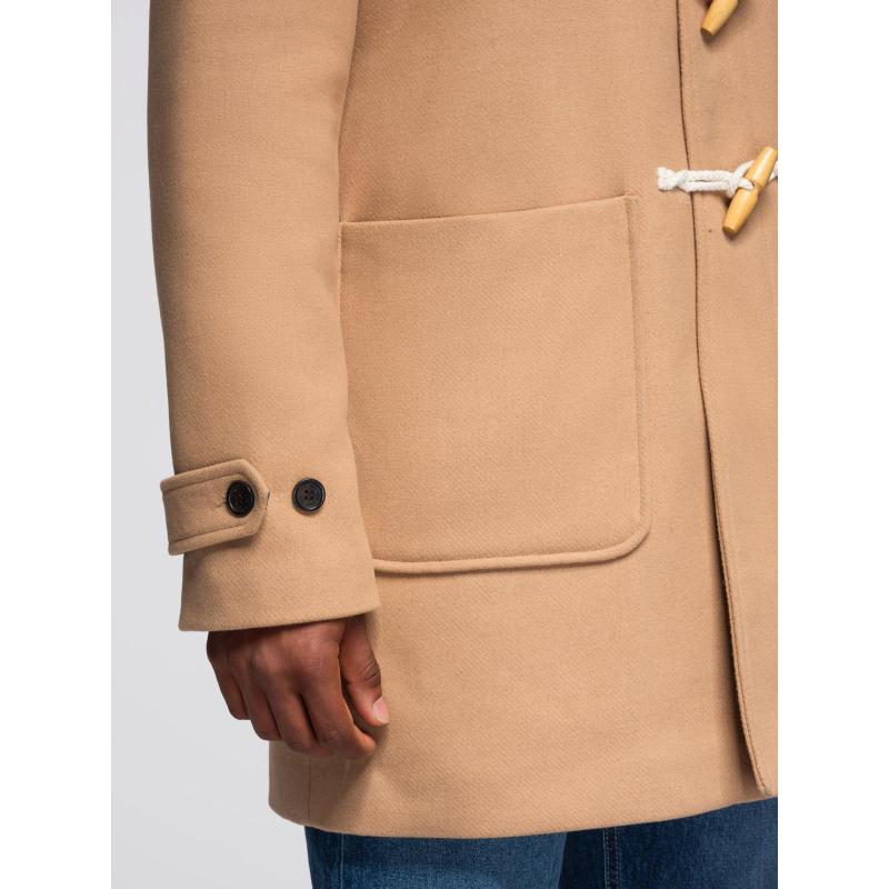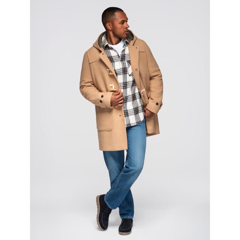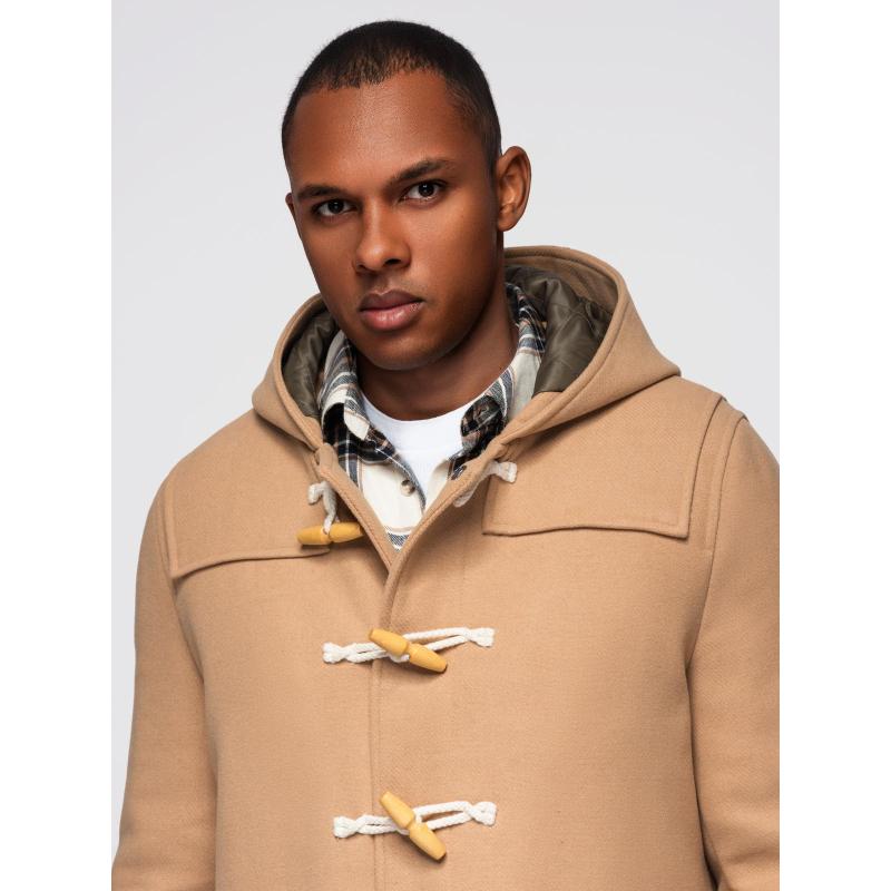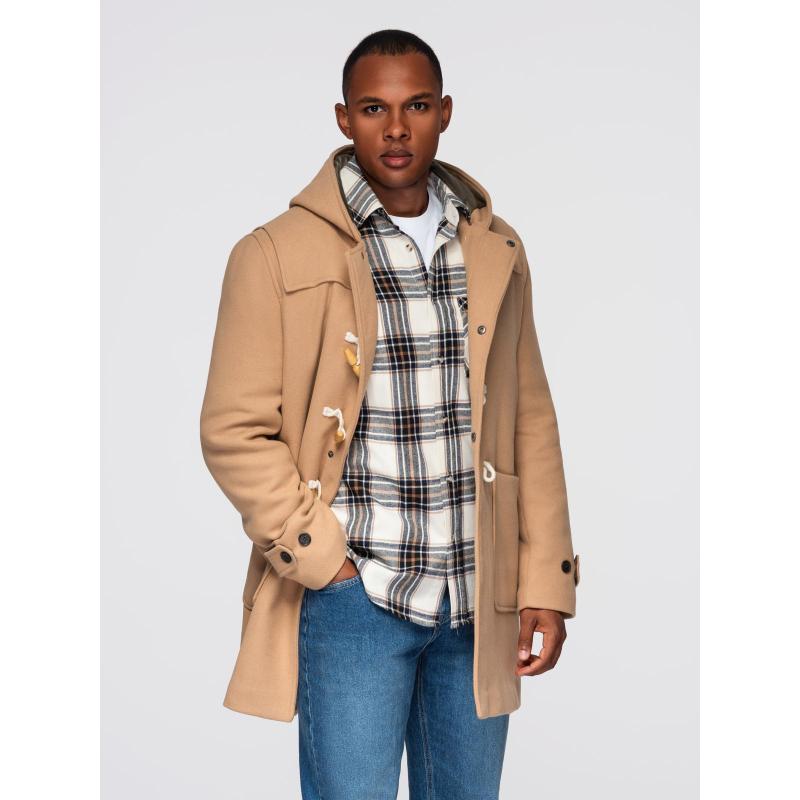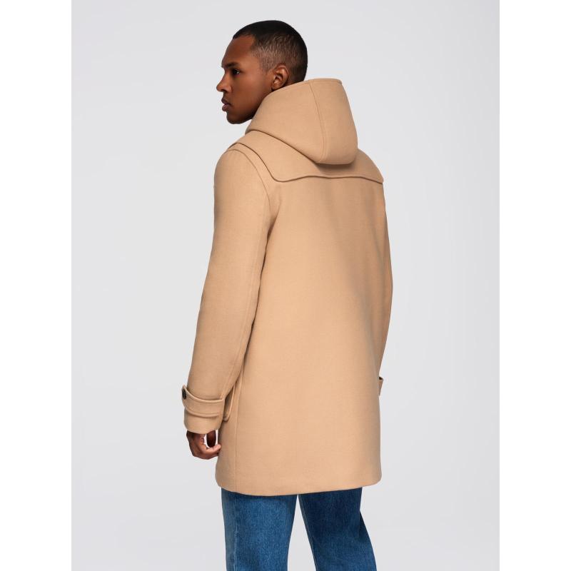 Pánsky vlnený kabát s kapucňou – svetlo hnedý V1 OM-COWC-0131