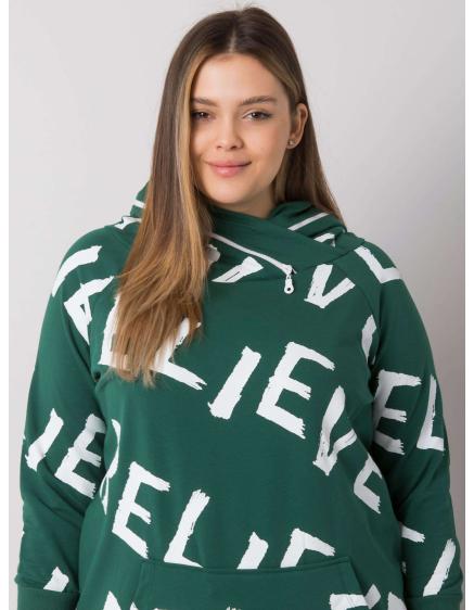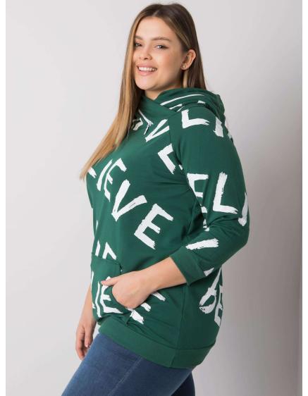 Dámska mikina s nápismi plus size BRENDA tmavo zelená