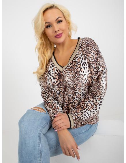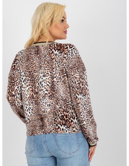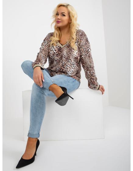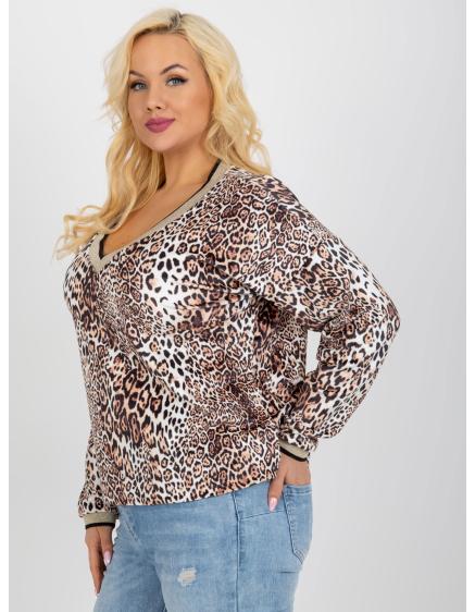 Dámska blúzka s potlačou velúrová plus size DIETMAR béžovo-čierna