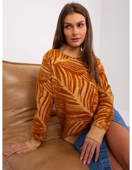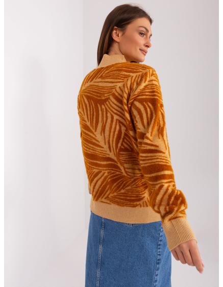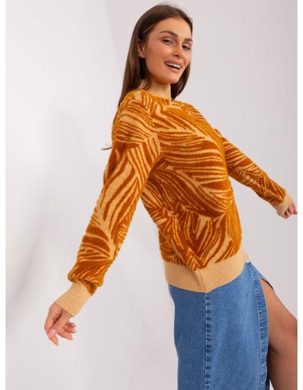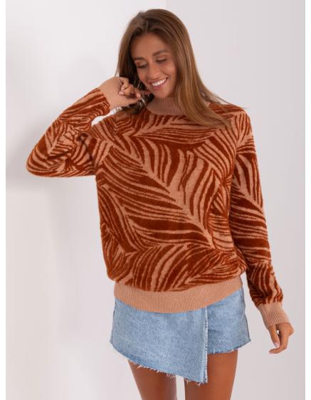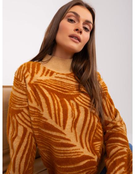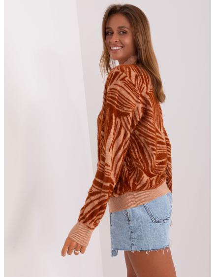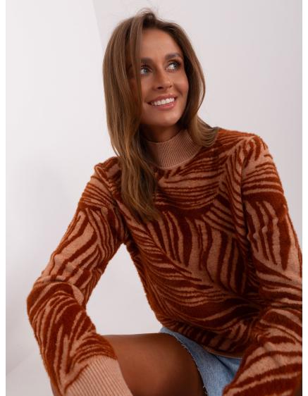 Dámsky sveter s rolákom a vzormi JAVION hnedý