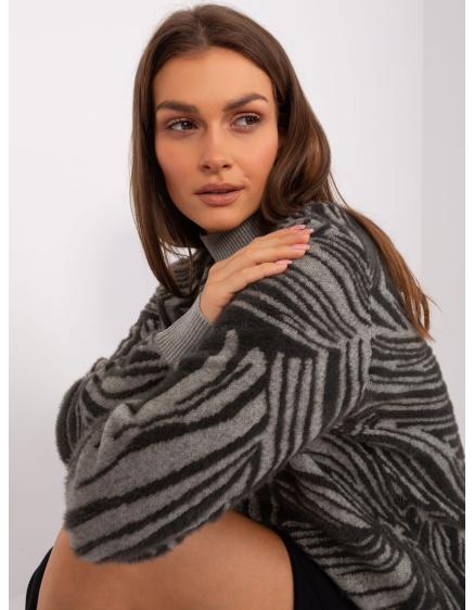 Dámsky sveter s rolákom a rebrovanými lemami ALDIN sivý