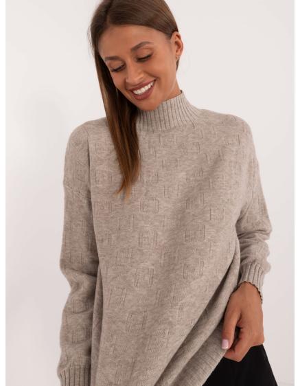 Dámsky sveter do polovice roláku vzorovaný béžový