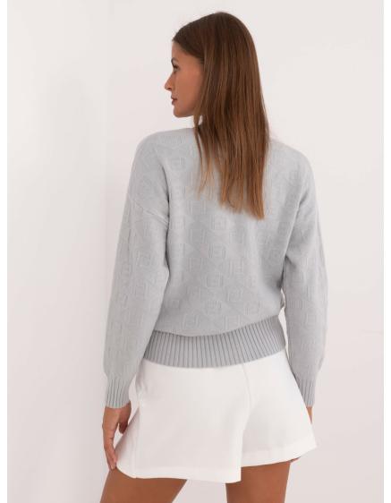 Dámsky vzorovaný sveter s polovičným rolákom svetlosivý