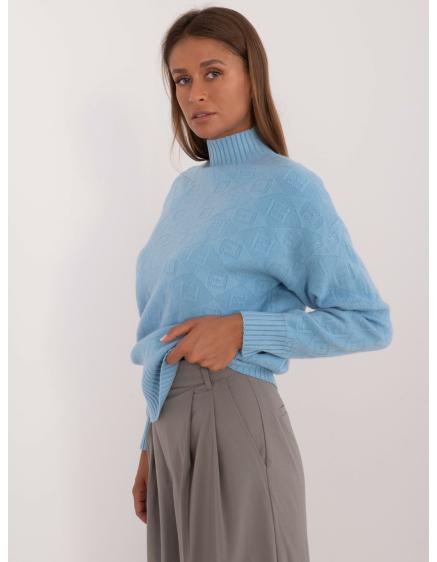 Dámsky sveter s dlhým rukávom a polovičným rolákom Svetlo modrá