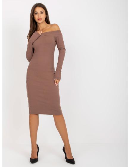 Dámske šaty odhaľujúce ramená RIMON hnedé