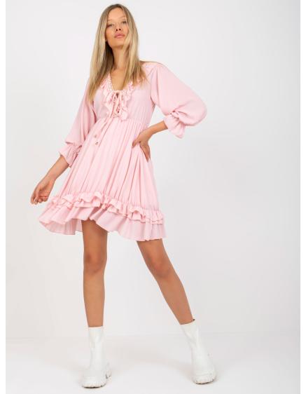 Dámske šaty s volánom Winona OCH BELLA svetlo ružové