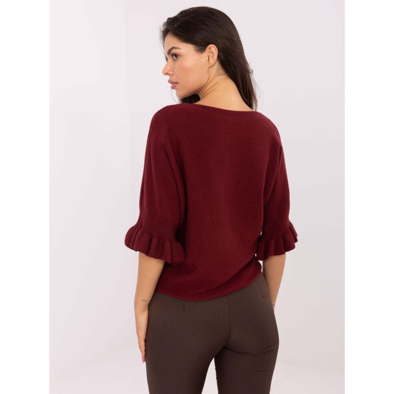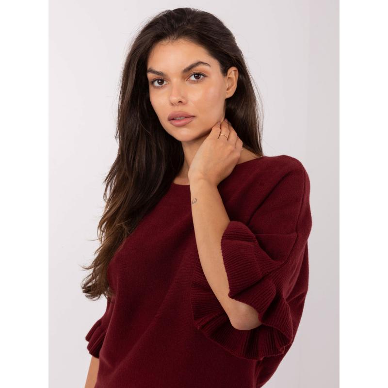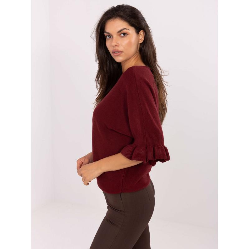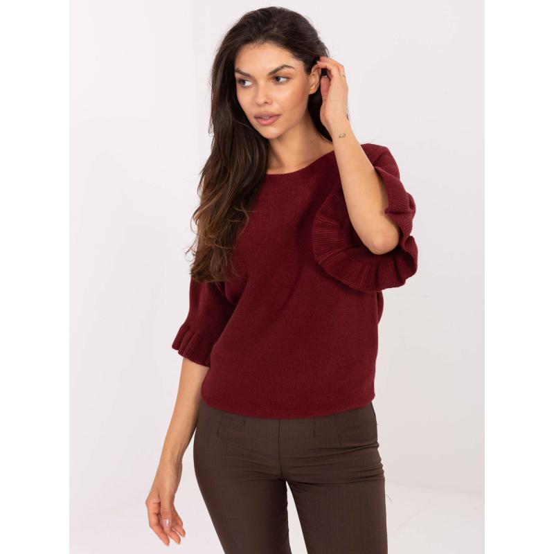Burgundský sveter s volánikmi na rukávoch
