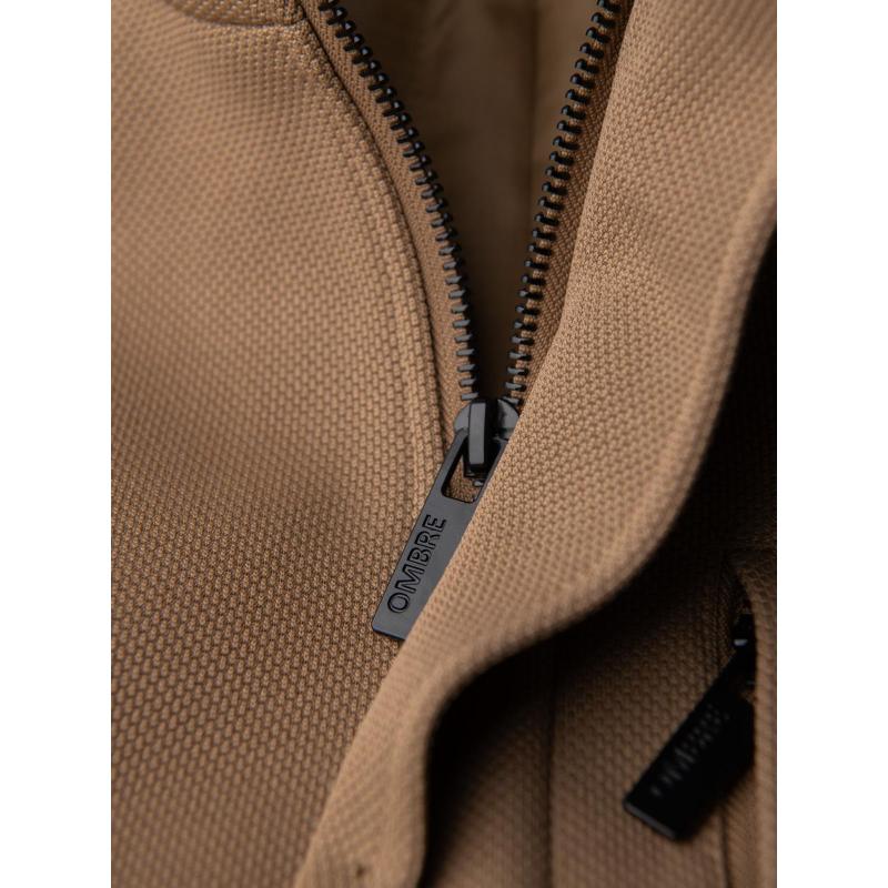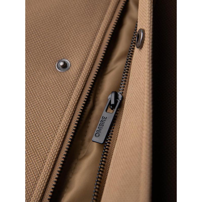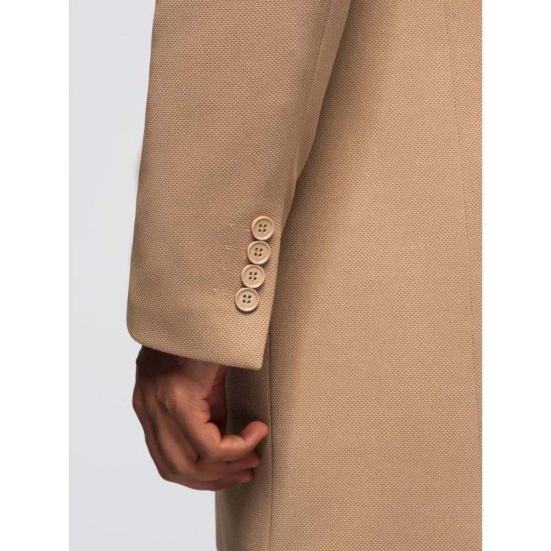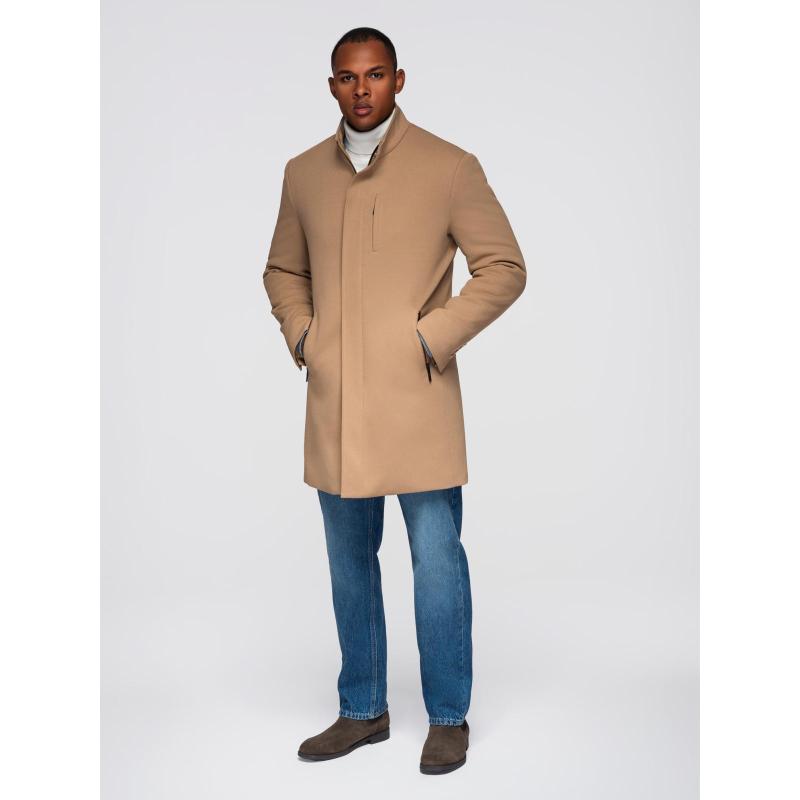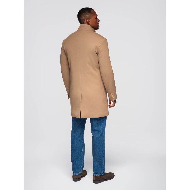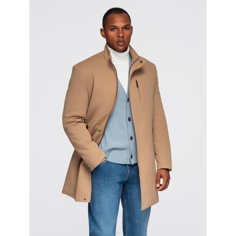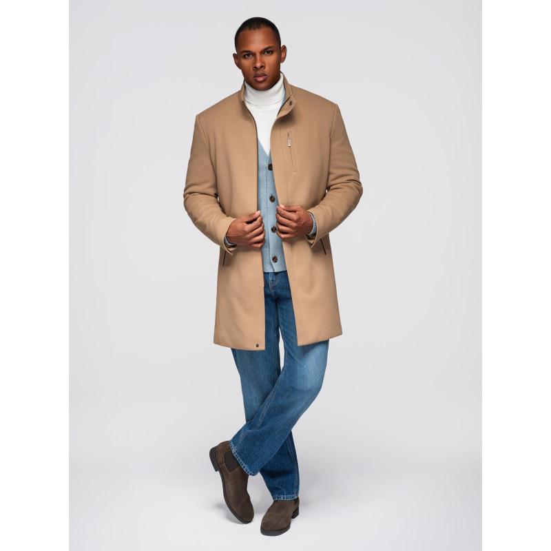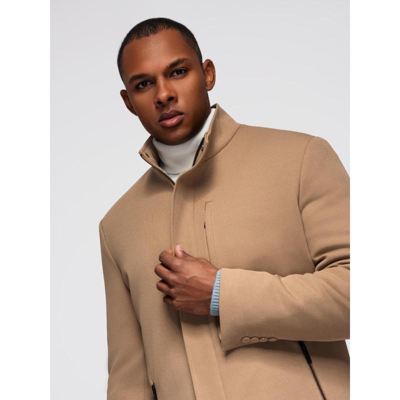 Štruktúrovaný pánsky kabát s vysokým golierom – svetlo hnedý V4 OM-COWC-0136