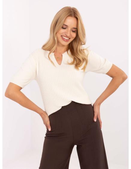 Dámsky plus size sveter s výstrihom do V ZEM svetlý béžový