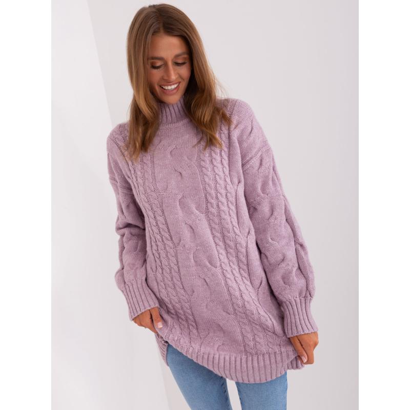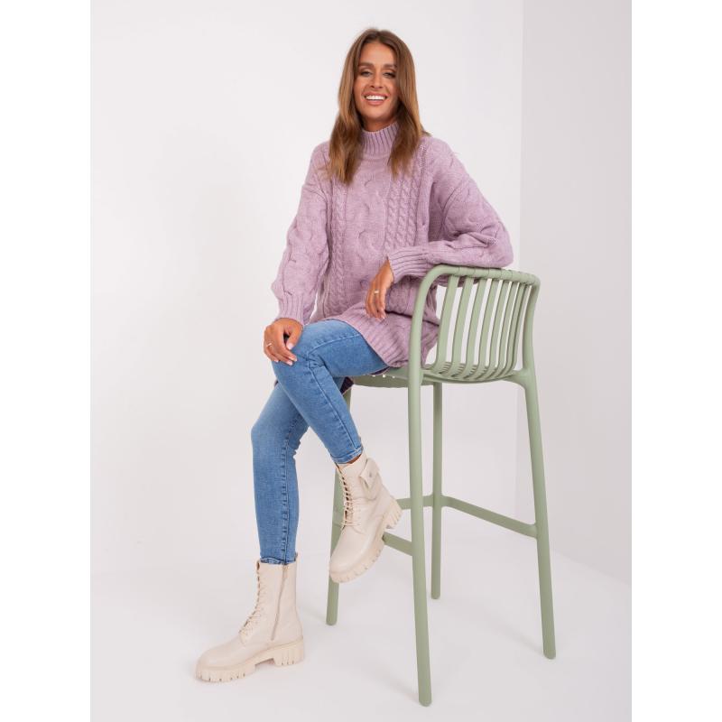 Fluorescenčný ružový dámsky oversized sveter s golierom RUE PARIS
