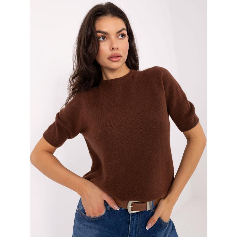 Hnedý oversized sveter s okrúhlym výstrihom.