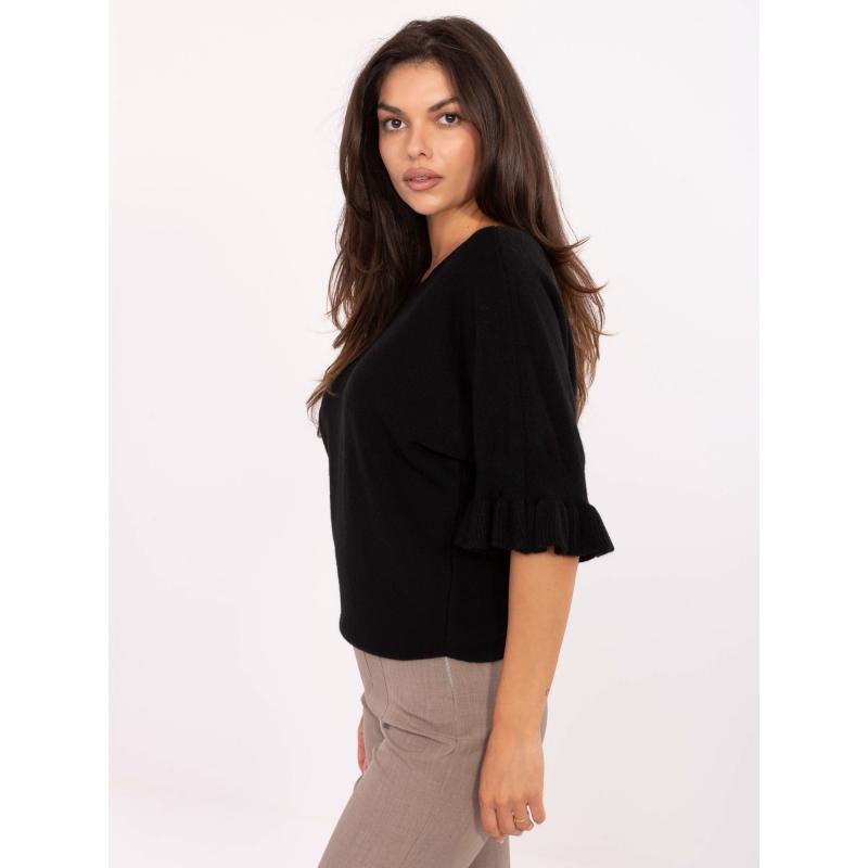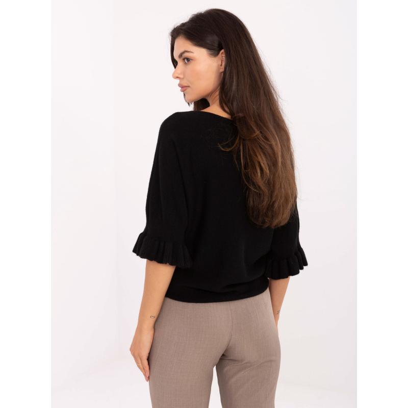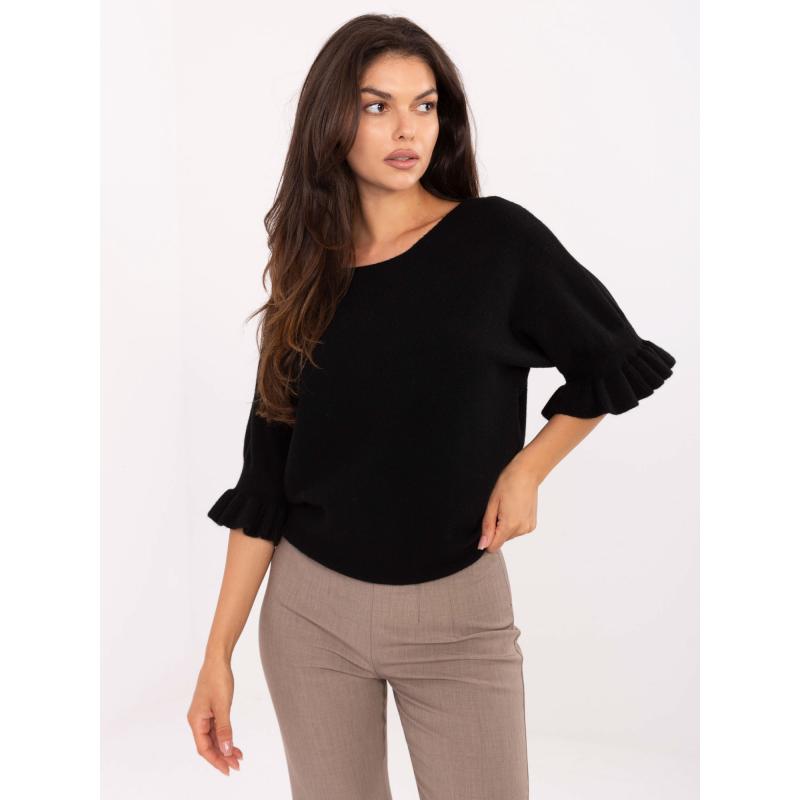 Čierny dámsky oversized sveter z vlnenej zmesi