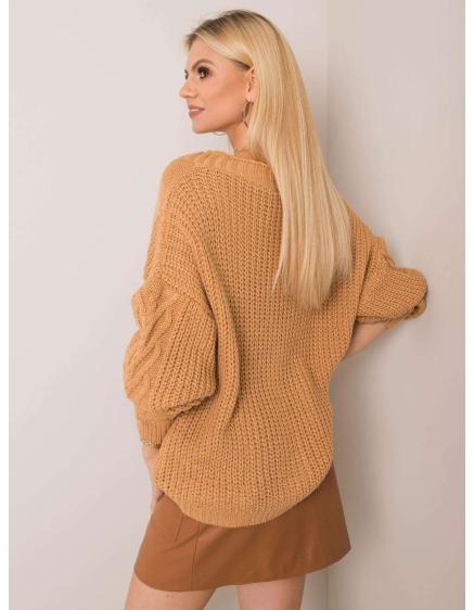 Dámsky sveter oversize pletený OCH BELLA tmavo béžový