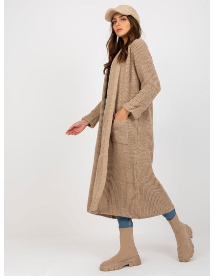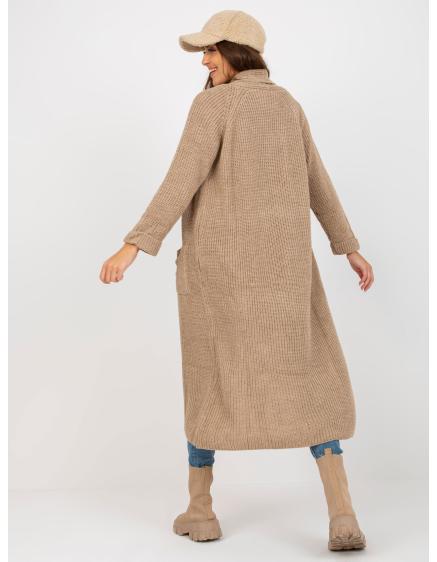 Dámsky sveter s vreckami dlhý OCH BELLA béžový