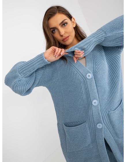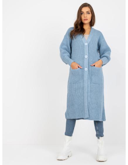 Dámsky sveter s vreckami dlhý OCH BELLA svetlo modrý