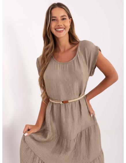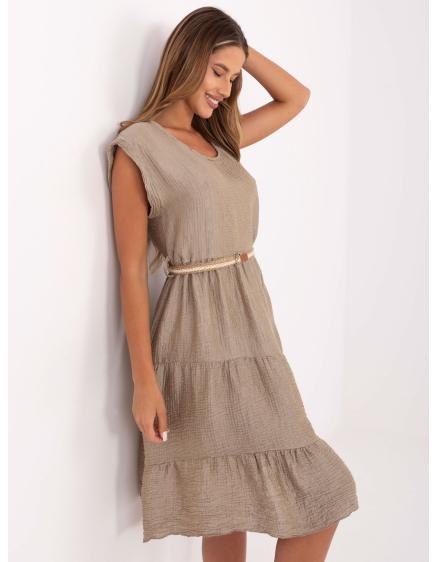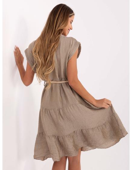 Tmavobéžové letné šaty s krátkymi rukávmi