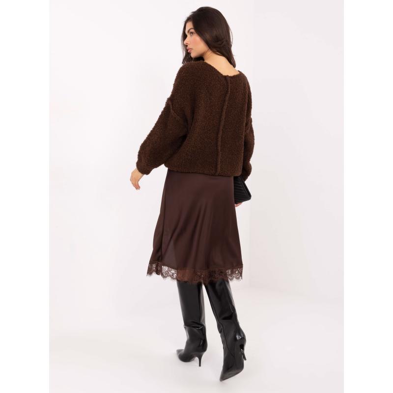 Tmavě hnědý bouclé svetr s dlouhými rukávy