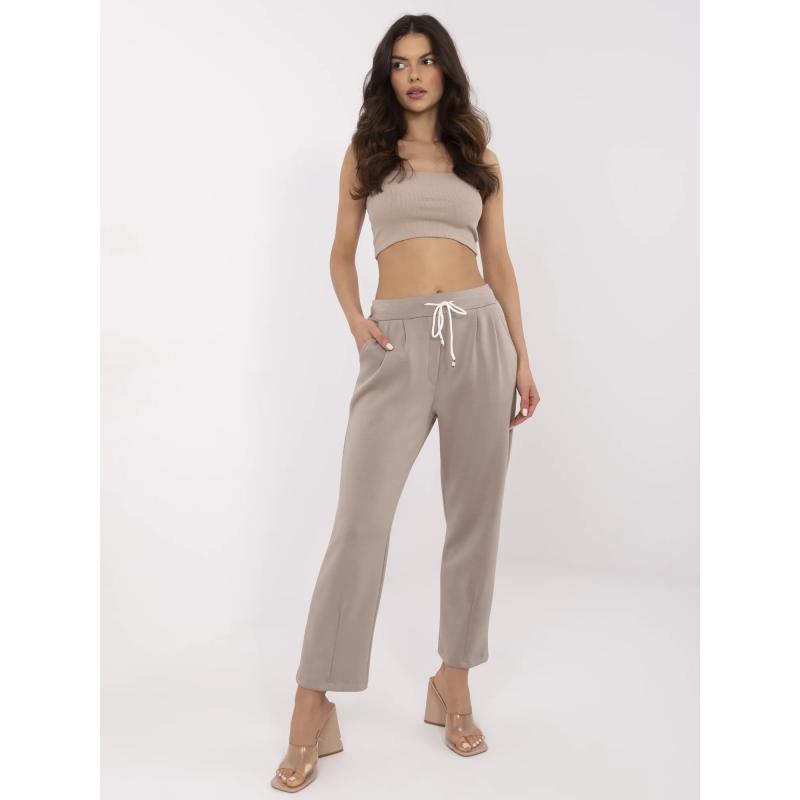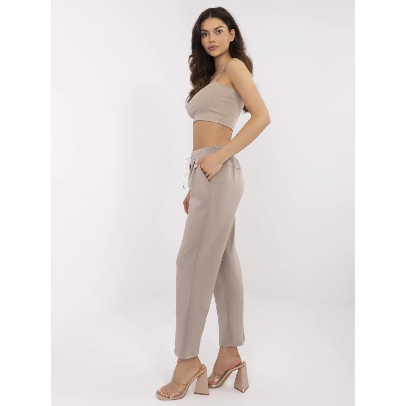 Tmavobéžové melanžové viskózové tepláky