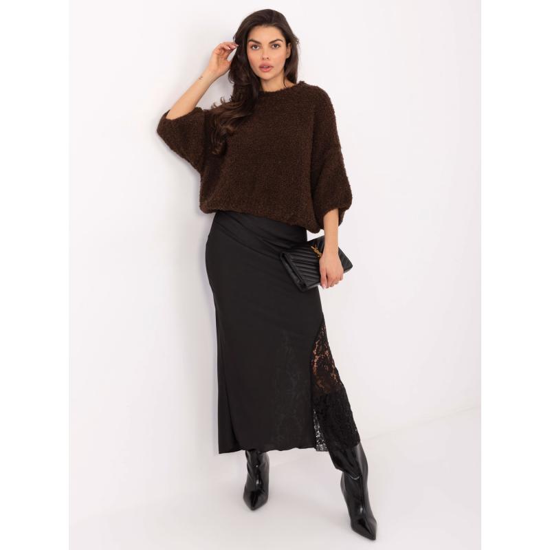 Tmavě hnědý bouclé svetr s příměsí vlny