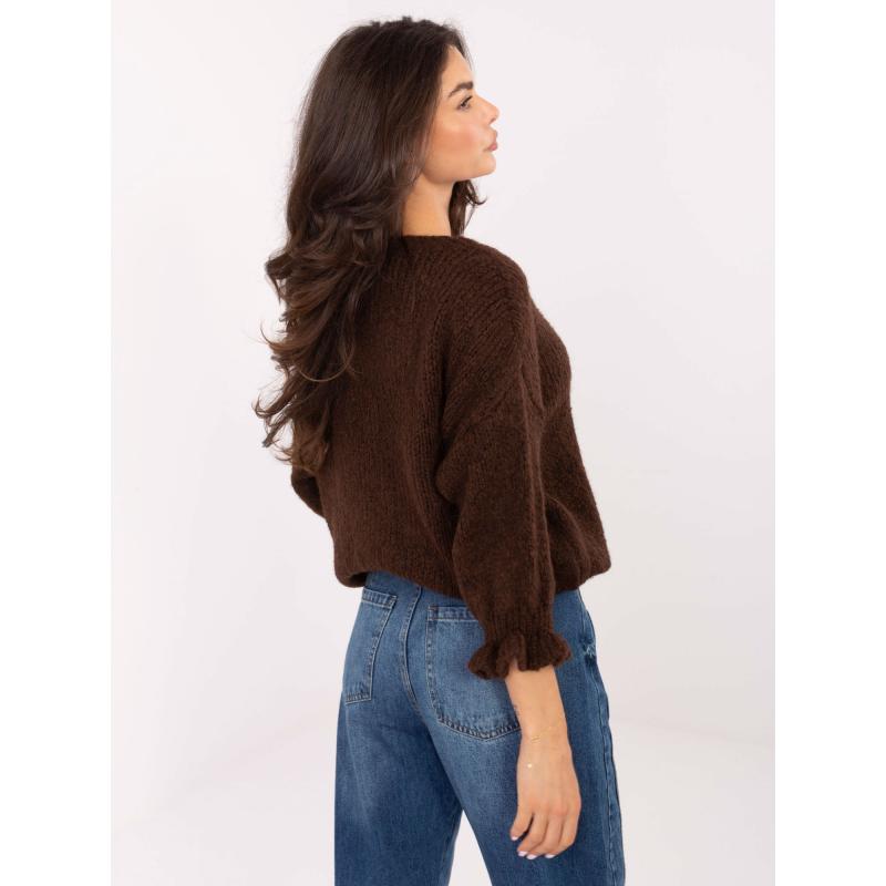 Tmavě hnědý dámský oversize svetr s vlnou