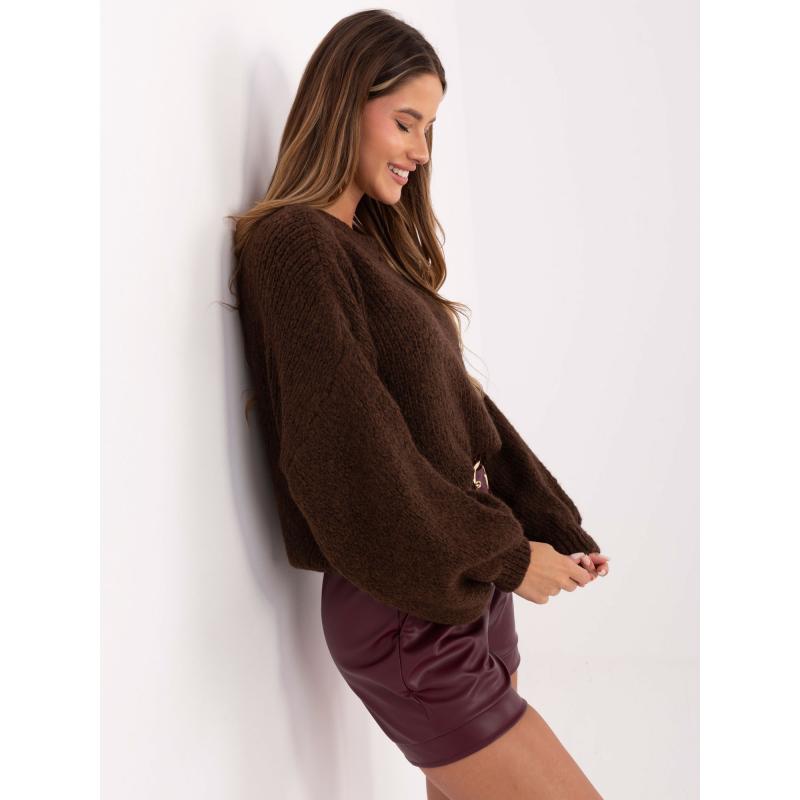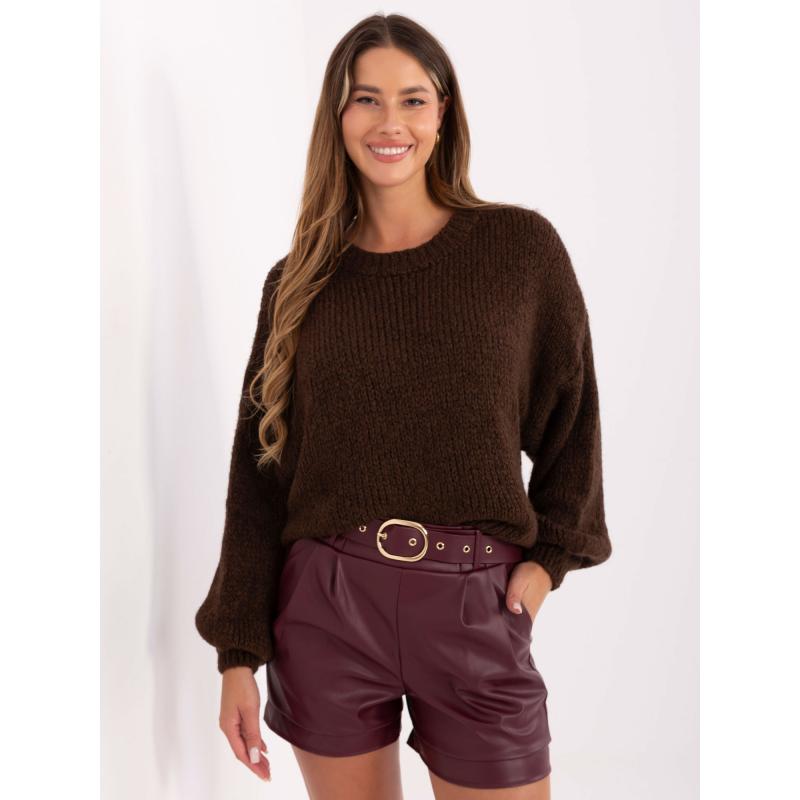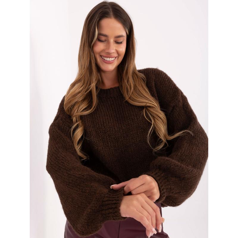 Hnedý oversized sveter s okrúhlym výstrihom.