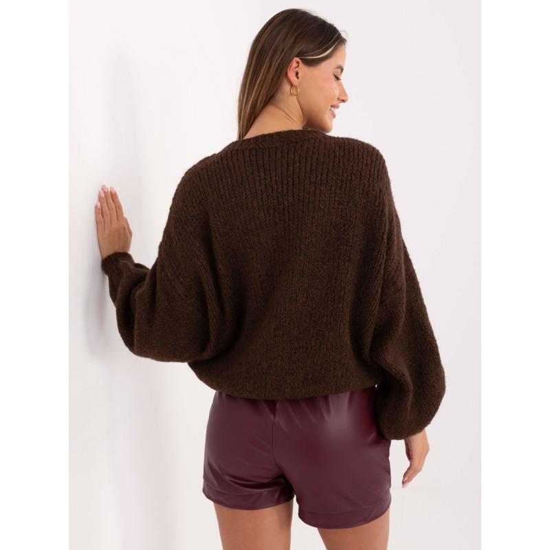 Tmavo hnedý sveter s gombíkmi v oversized strihu