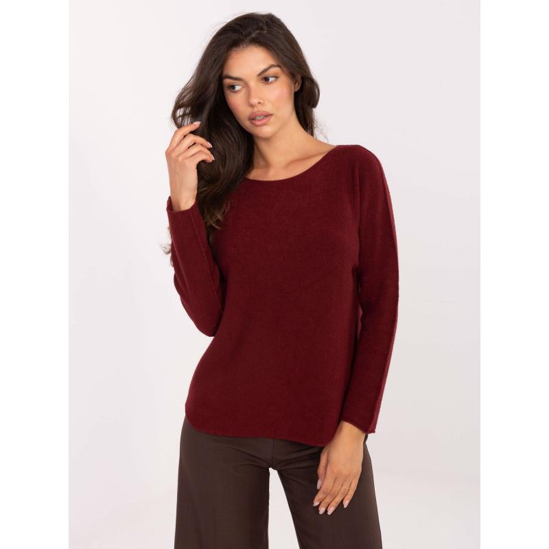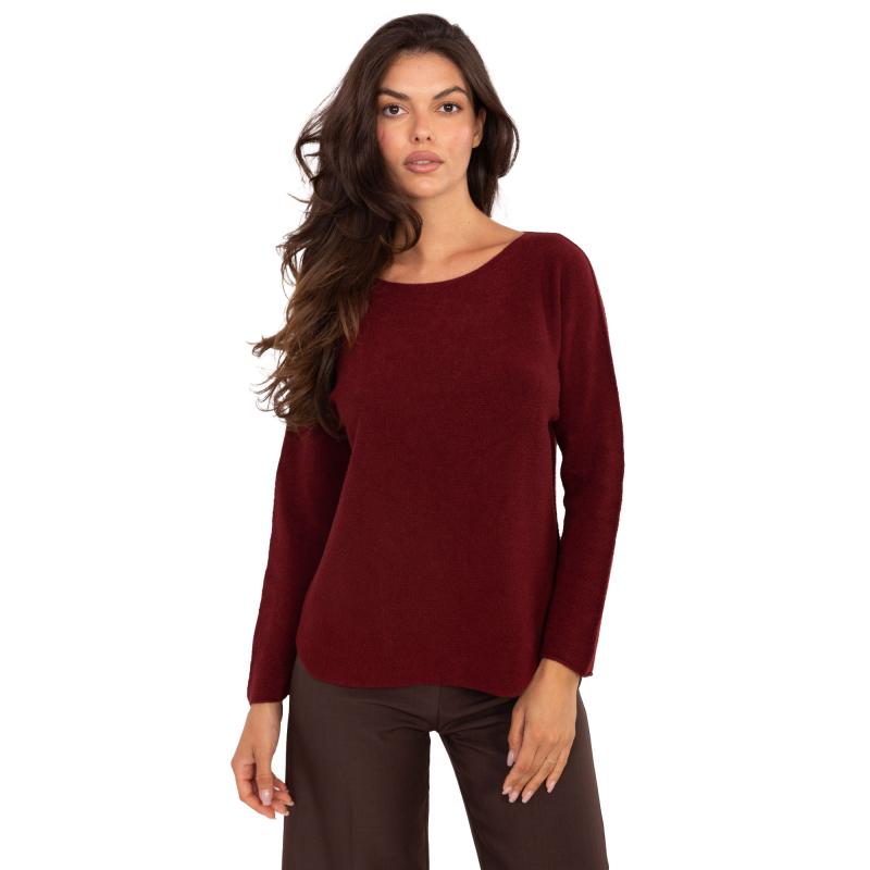 Tmavě hnědý dámský svetr s kulatým výstřihem