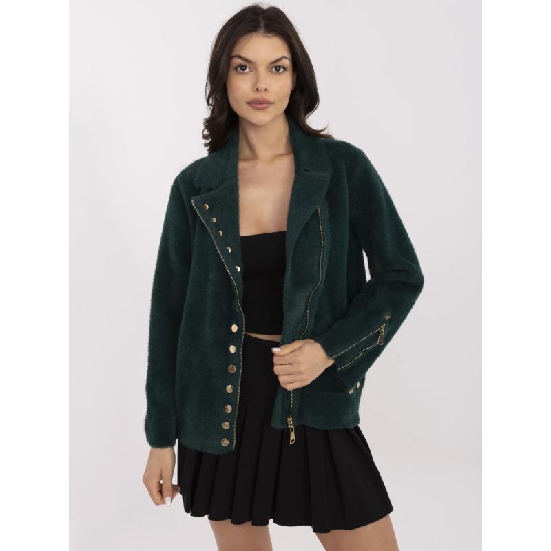 Tmavě zelená bunda z alpaka s příměsí vlny