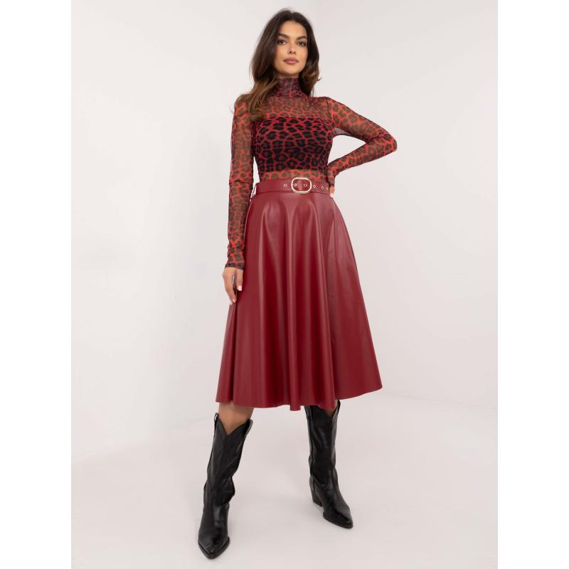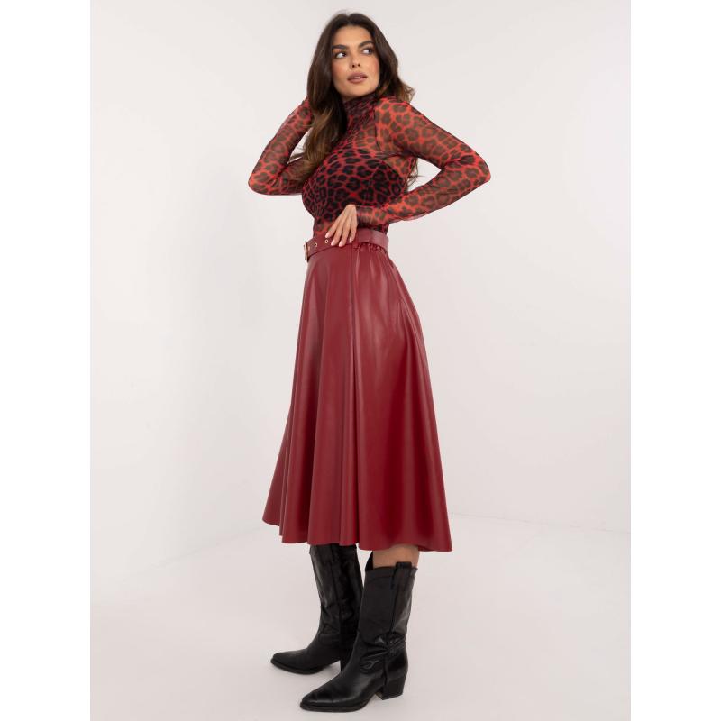 Burgundi elegáns öko bőrszoknya