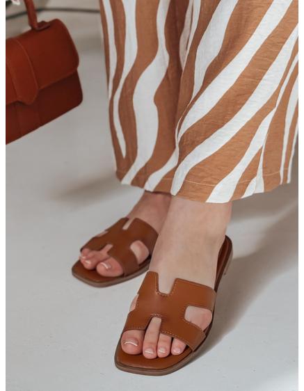 Dámske šľapky s výrezmi KLASSINO kamelové